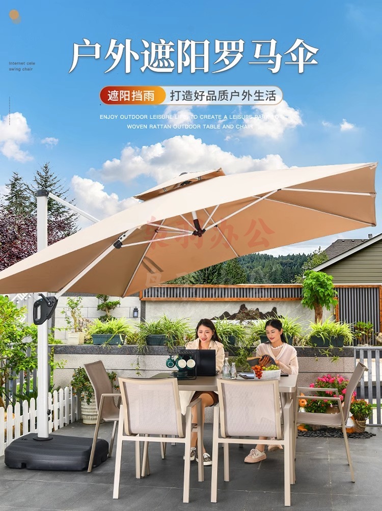 户外遮阳伞2.5米铁方伞+十字架底座【颜色下单备注】庭院伞商用咖啡厅太阳伞室外罗马伞别墅花园摆摊户外伞