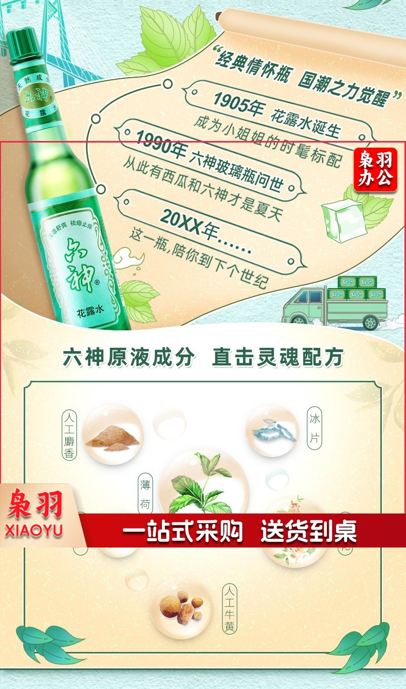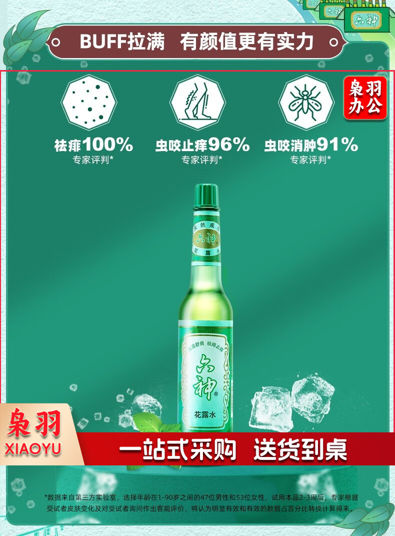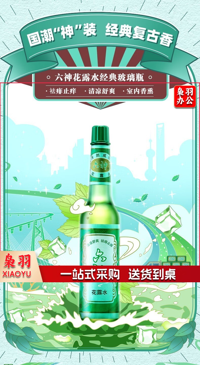 六神花露水 经典玻璃瓶清凉舒爽祛痱止痒195ml