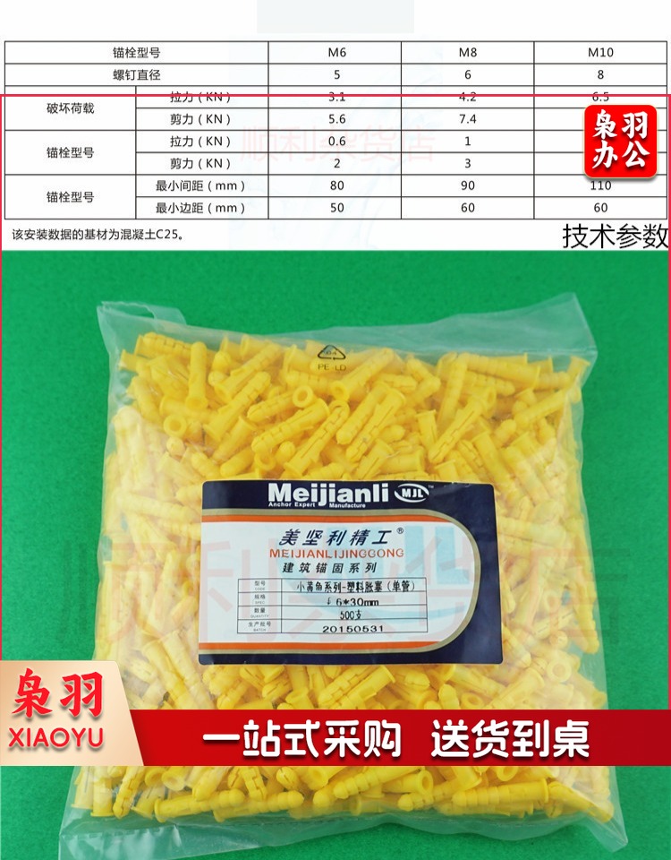 塑料胀管 小黄鱼 6*30mm 500个/包