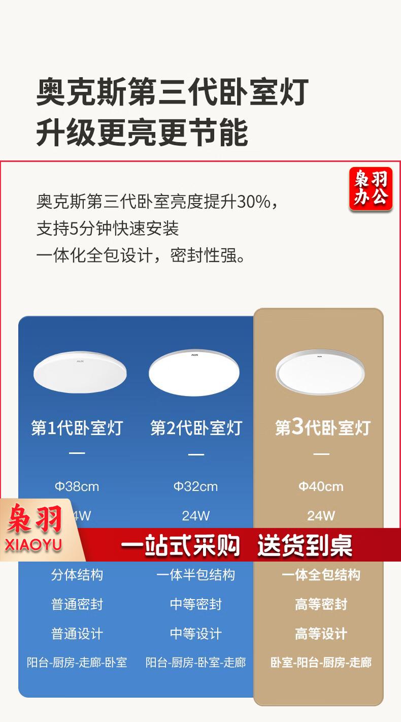 奥克斯(AUX)吸顶灯led卧室灯具客厅灯饰书房阳台灯薄款北欧现代简约吸顶灯
