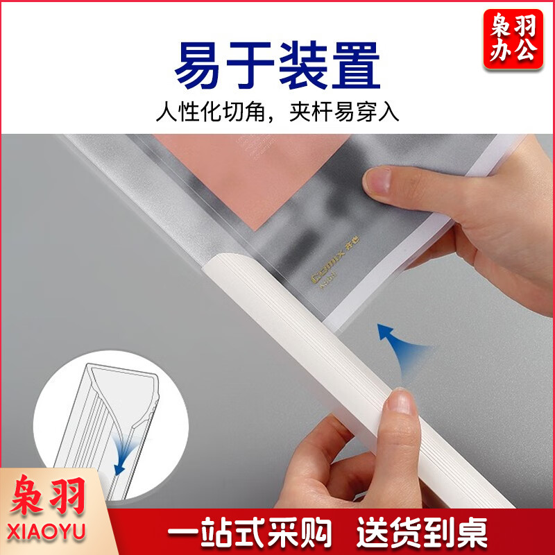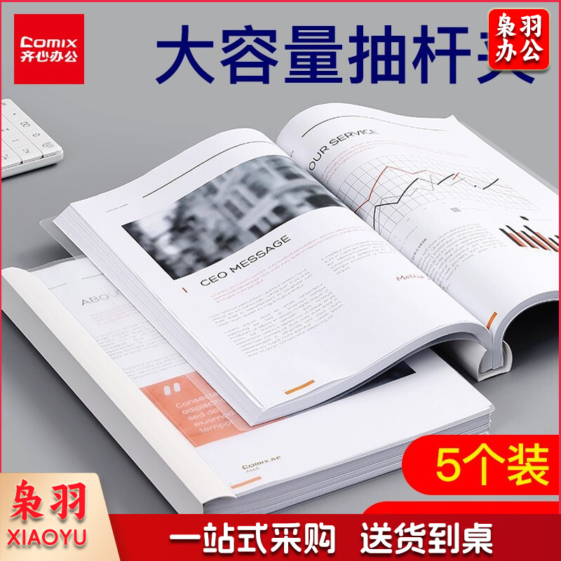 齐心(COMIX) 抽杆夹25mm大容量办公报告夹A4透明拉杆夹 资料整理收纳夹 5个装(可容纸约200张)