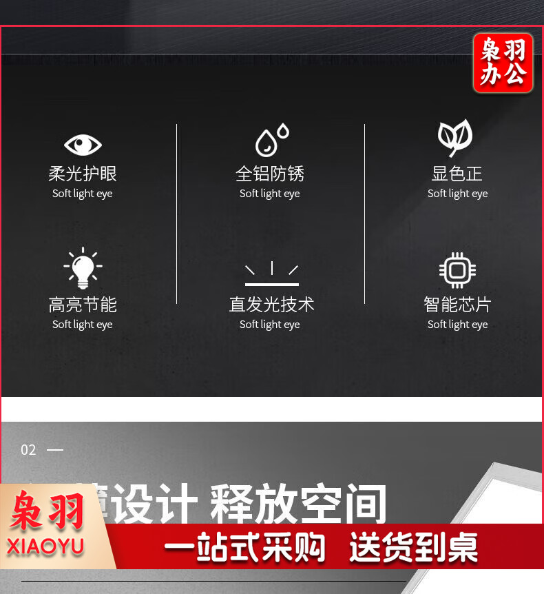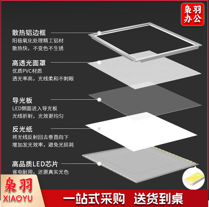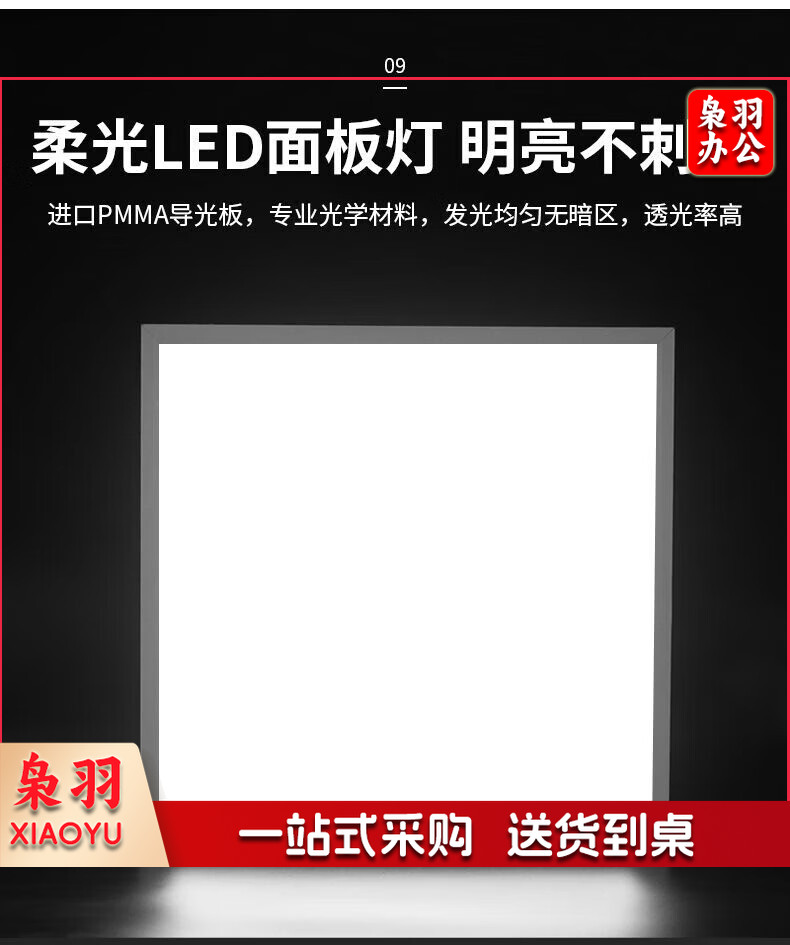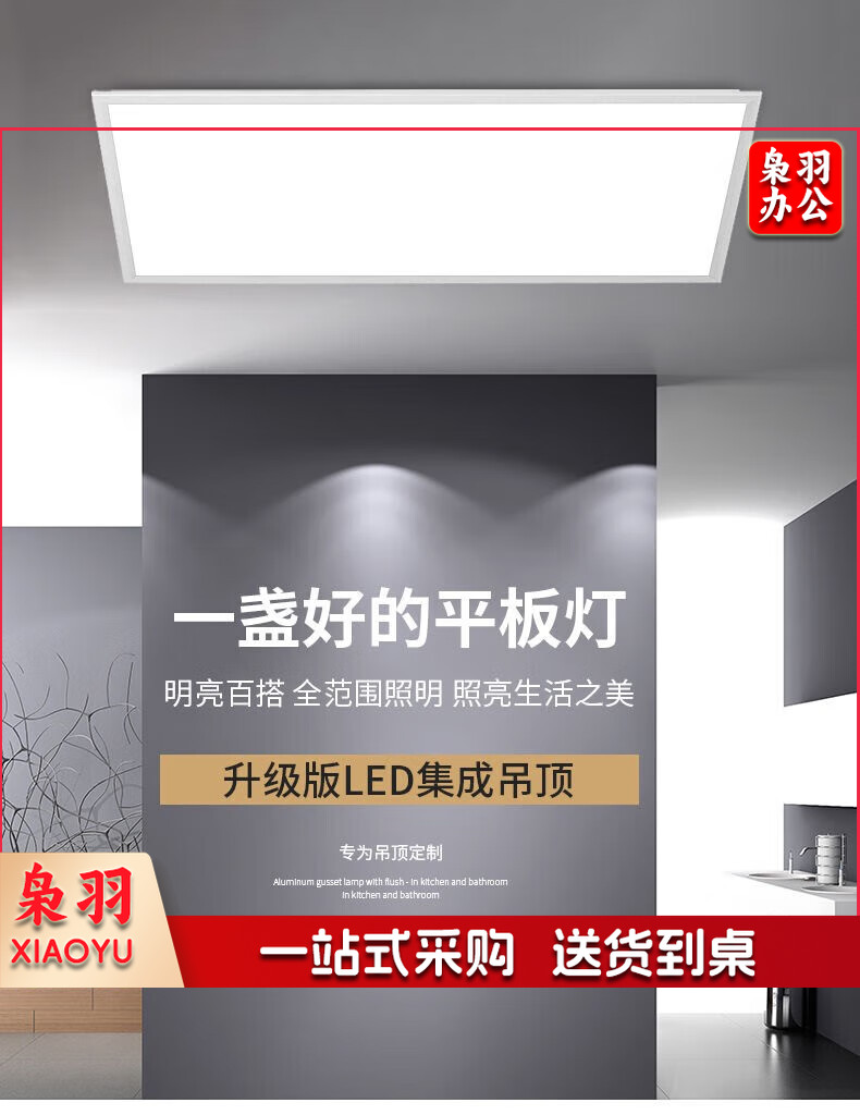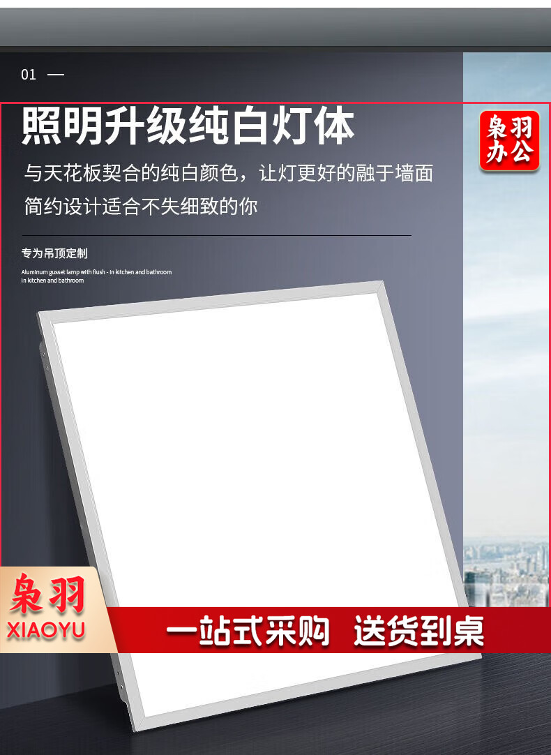 LED集成吊顶灯面板灯595x595平板灯扣板灯正方形办公室嵌入式灯具 59.5*59.5cm白光48W-单个装