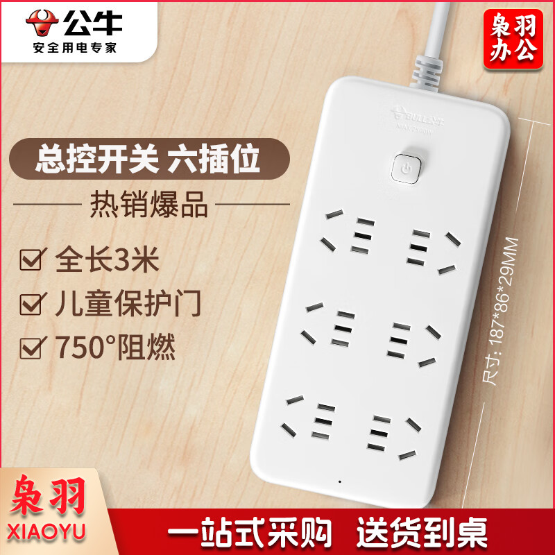公牛(BULL)接线板 插排 GN-B2060 6位总控全长3米