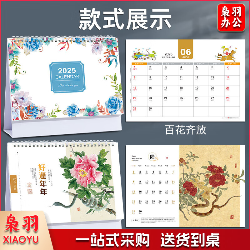 台历2025年蛇年大格子书写月历简约办公桌面日历百花齐放系列