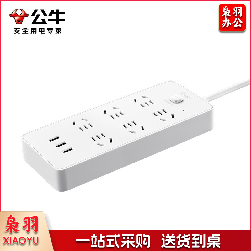 公牛(BULL)超功率保护 新国标公牛小白USB插座/插线板/插排/排插 GNV-UUN153 3usb接口 6孔全长3米
