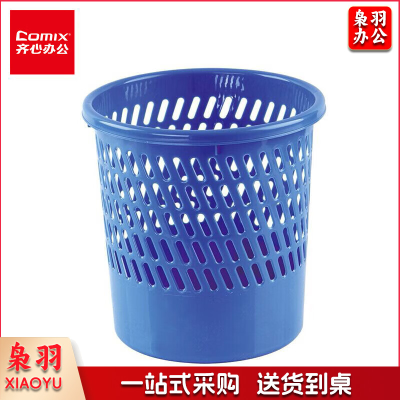 齐心(COMIX)垃圾篓 直径25.5cm耐用经济型圆纸篓/清洁桶/垃圾桶 蓝色
