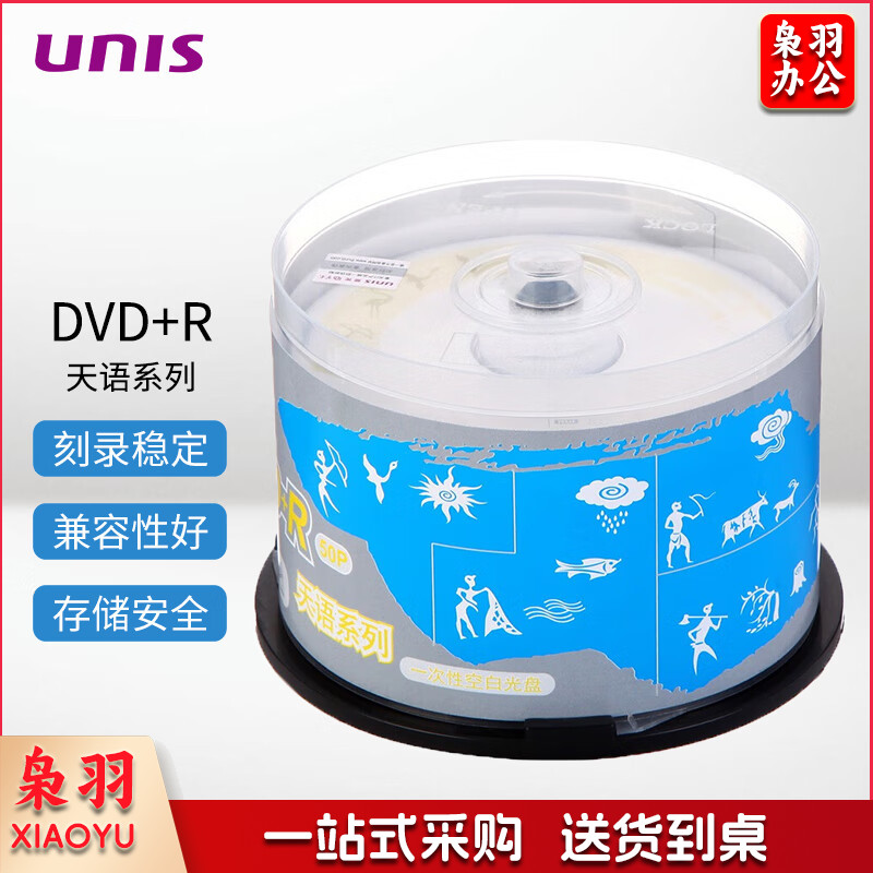紫光(UNIS)DVD+R光盘/刻录盘 天语系列 空白盘 16速4.7G 桶装50片