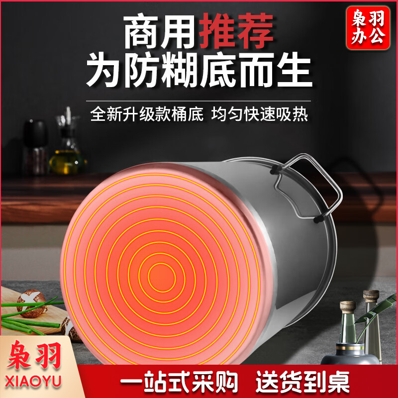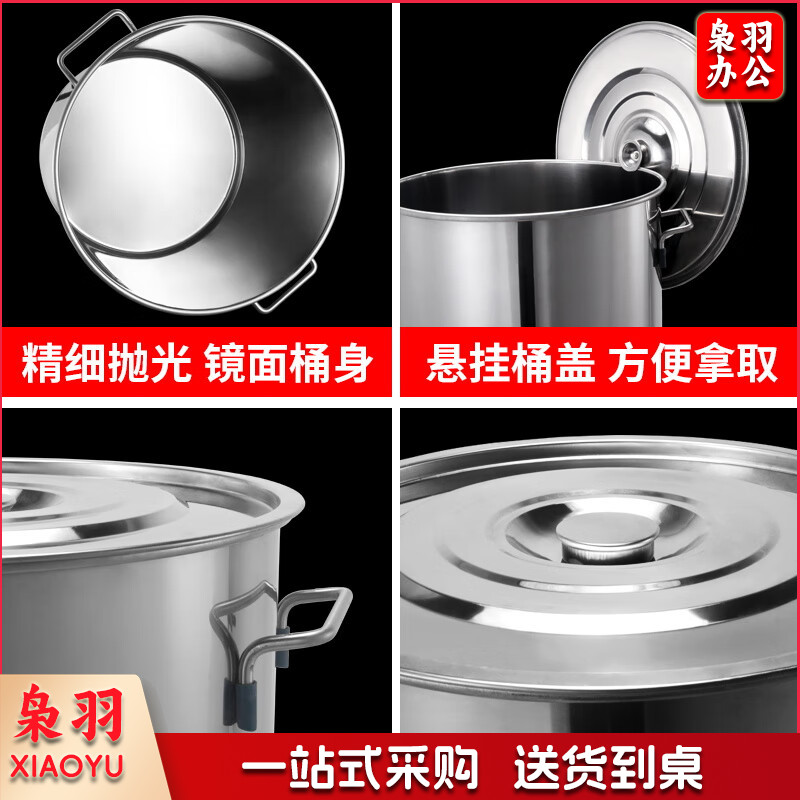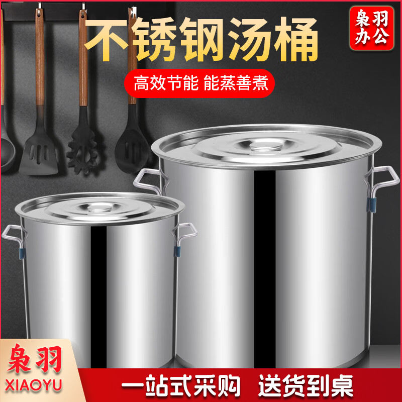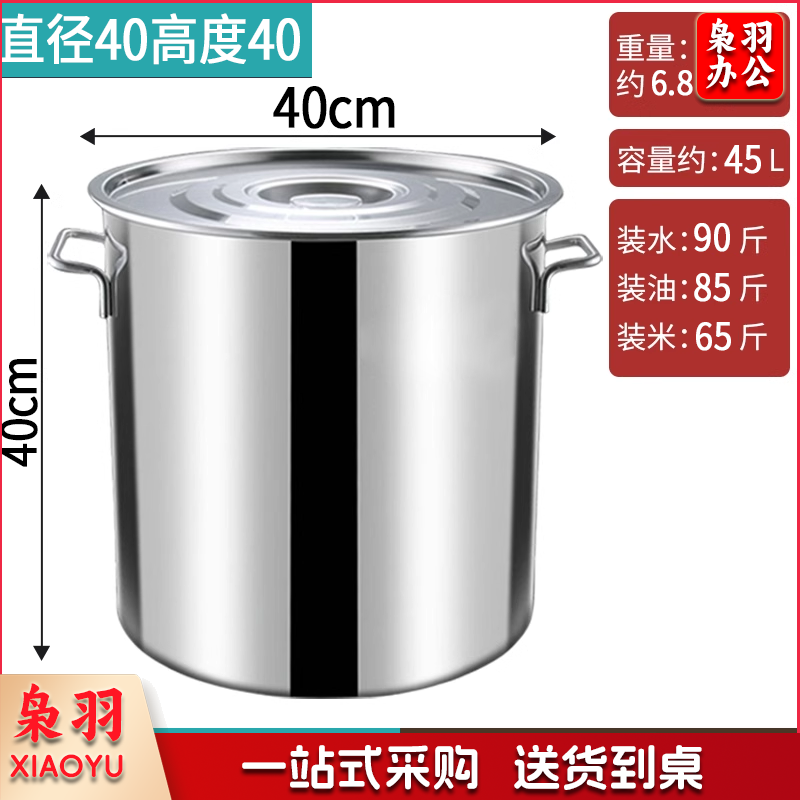 不锈钢桶家用圆桶商用米桶汤锅带盖卤锅汤桶米缸烧水白钢卤桶大桶 加厚2.0直径40高 40cm