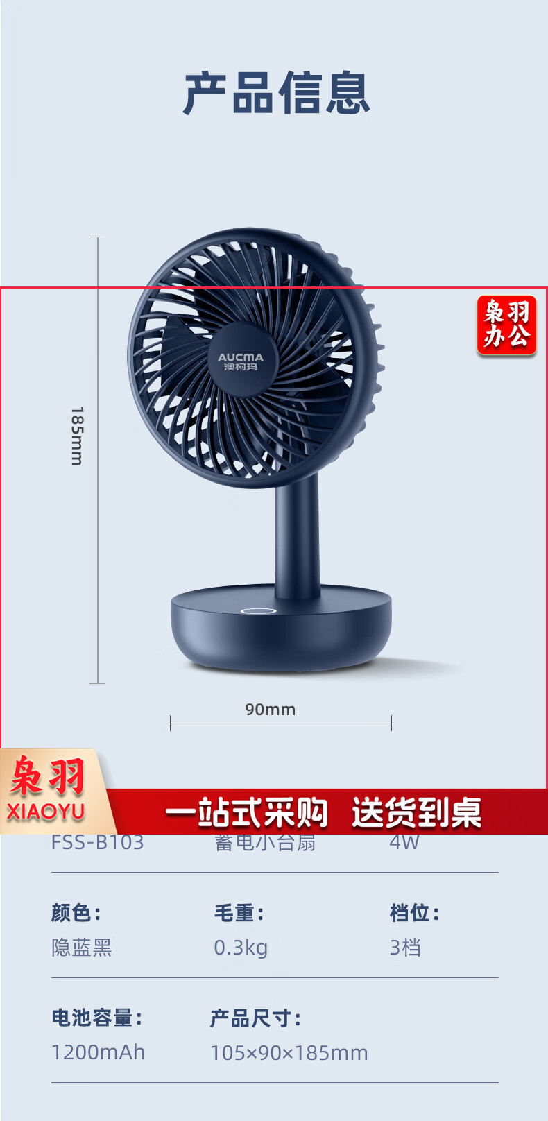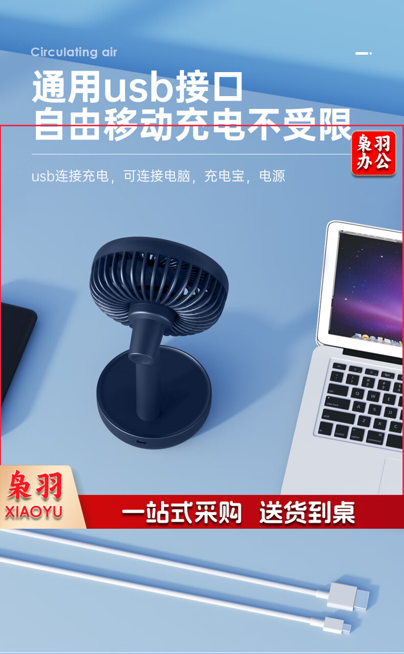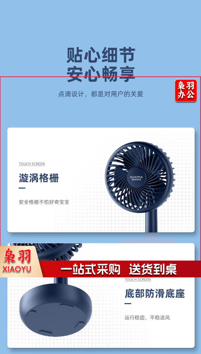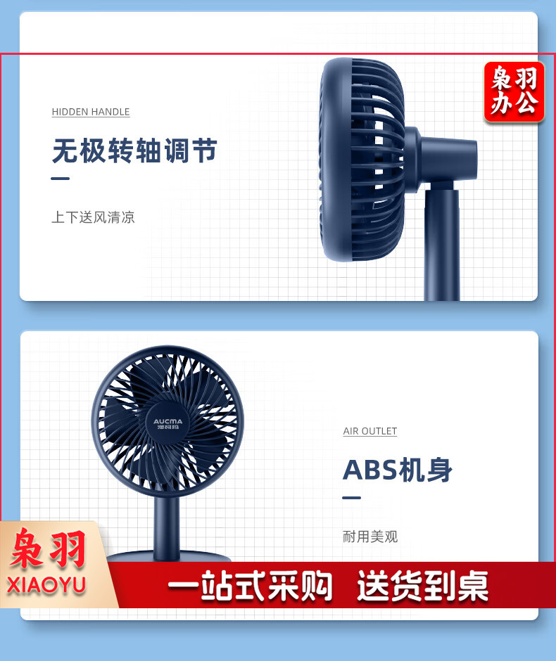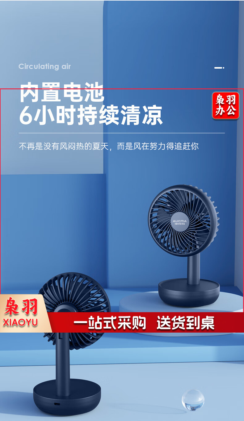 澳柯玛(AUCMA) FSS-B103L 小电风扇桌面台扇手持式小风扇迷你充电usb小风扇宿舍办公室便携床头风扇蓄电小台扇