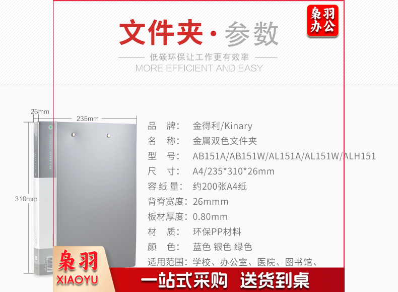 金得利(KINARY) A4金属色单双强力文件夹长短夹双夹板夹二合一 AB151A商务办公试卷环保PP文具经典色高档工作用文件夹