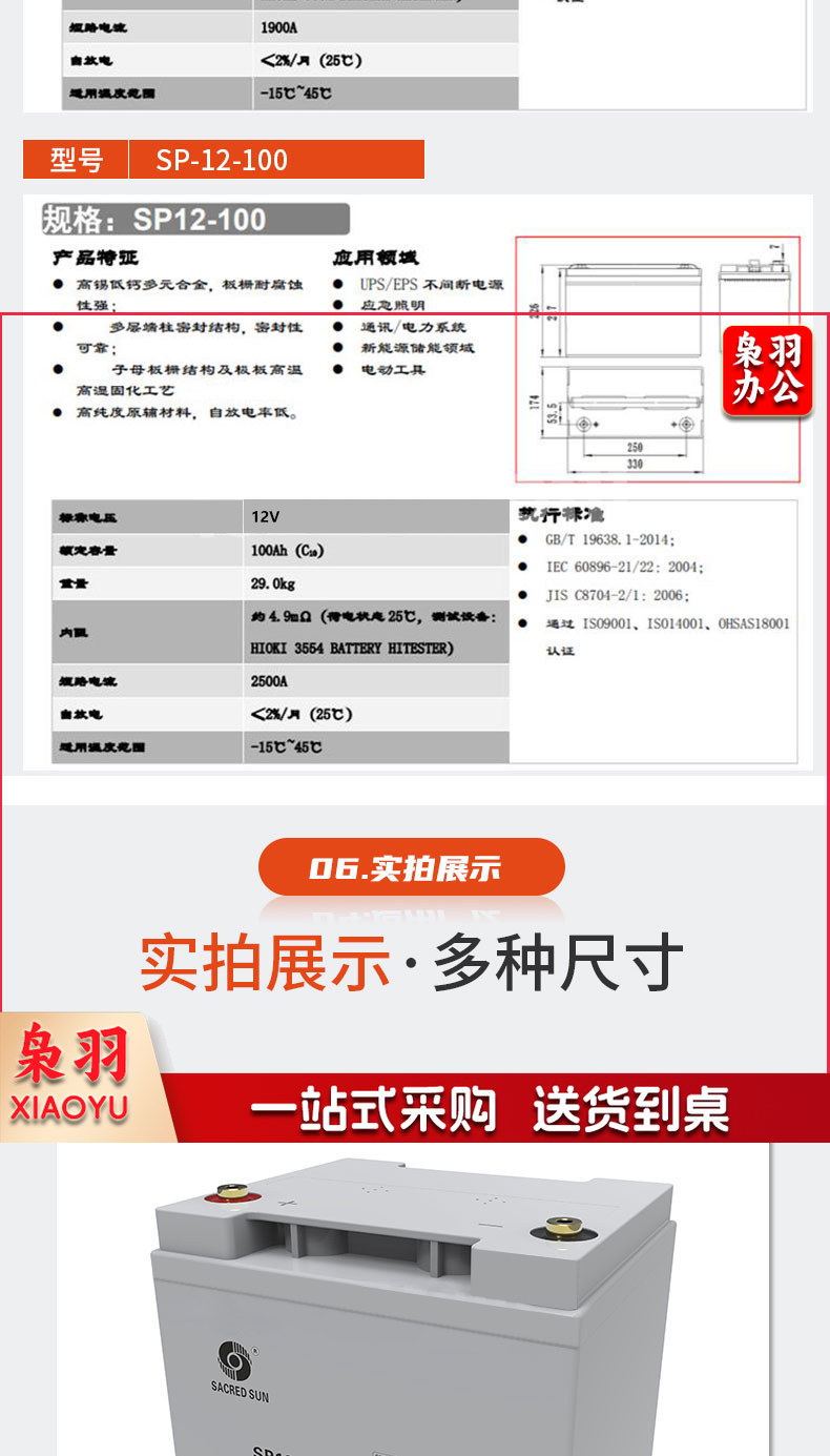 圣阳UPS蓄电池 SP12-100 12V100AH铅酸免维护电池 UPS电源直流屏EPS应急通讯电源专用