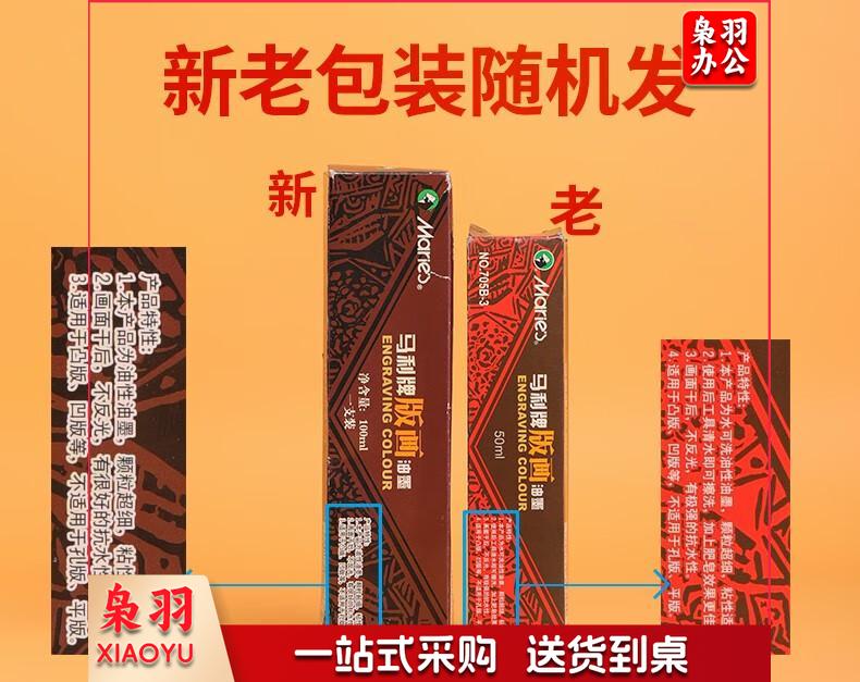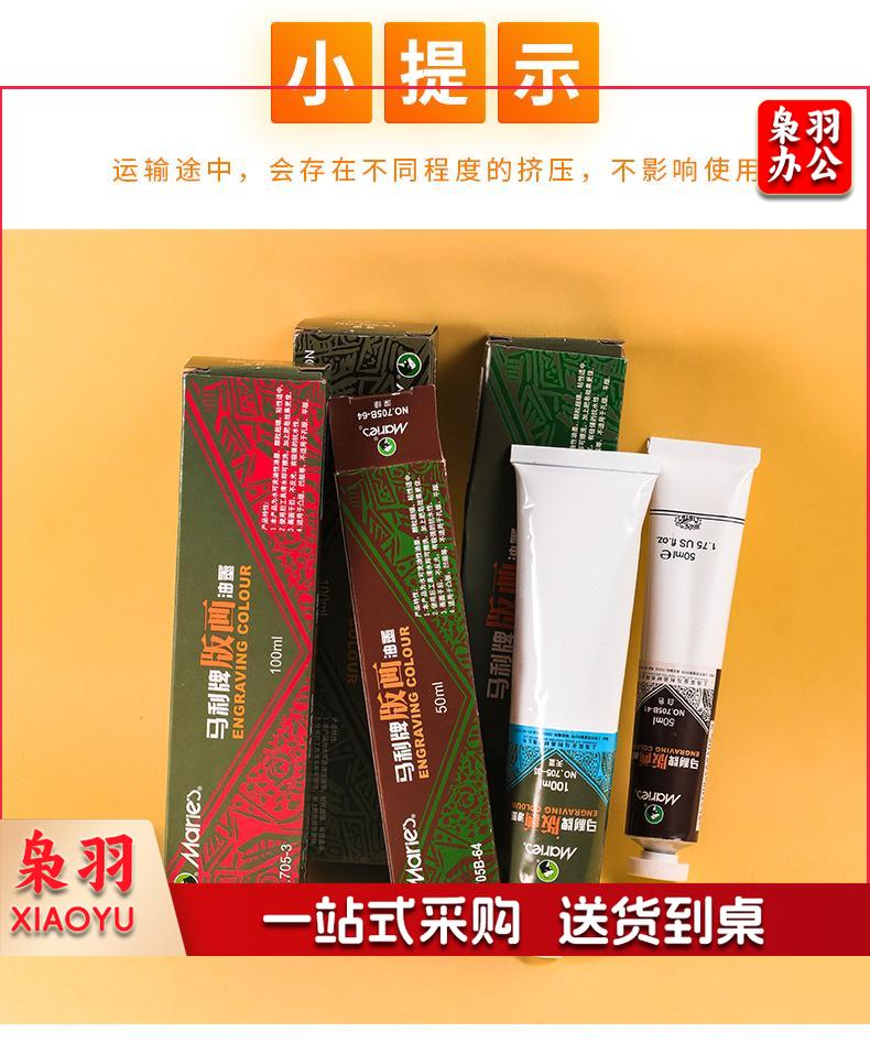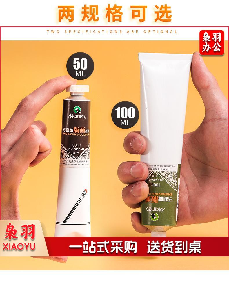 马利(Marie's) 705可水洗油性版画油墨50/100ML红/黄/蓝/绿/白/黑色版画颜料油墨 51#黑色 100ML3大红|100ML