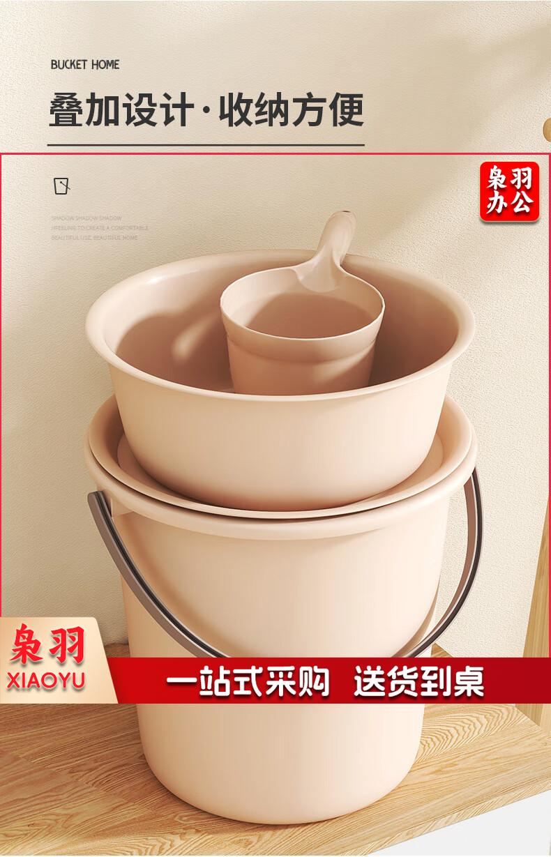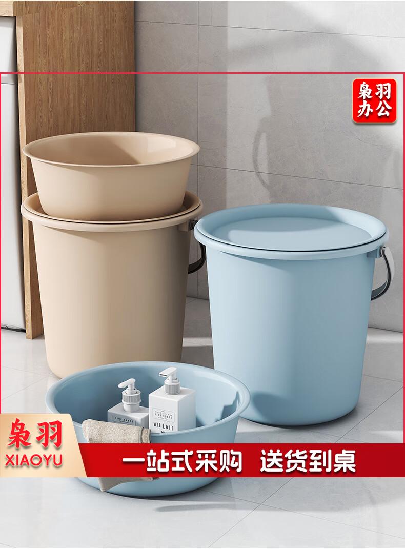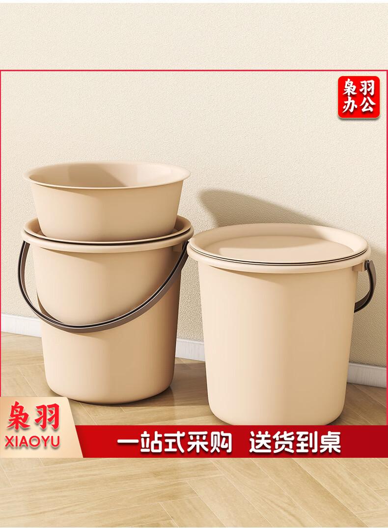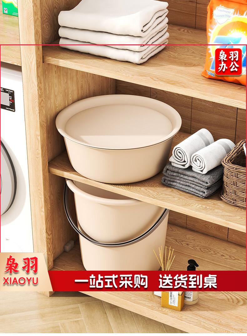 家用水桶塑胶桶加厚带盖洗衣桶家用塑料桶学生宿舍储水洗澡桶 18L加大号卡其磨砂带盖/32*34CM 1个装默认规格