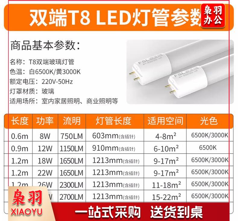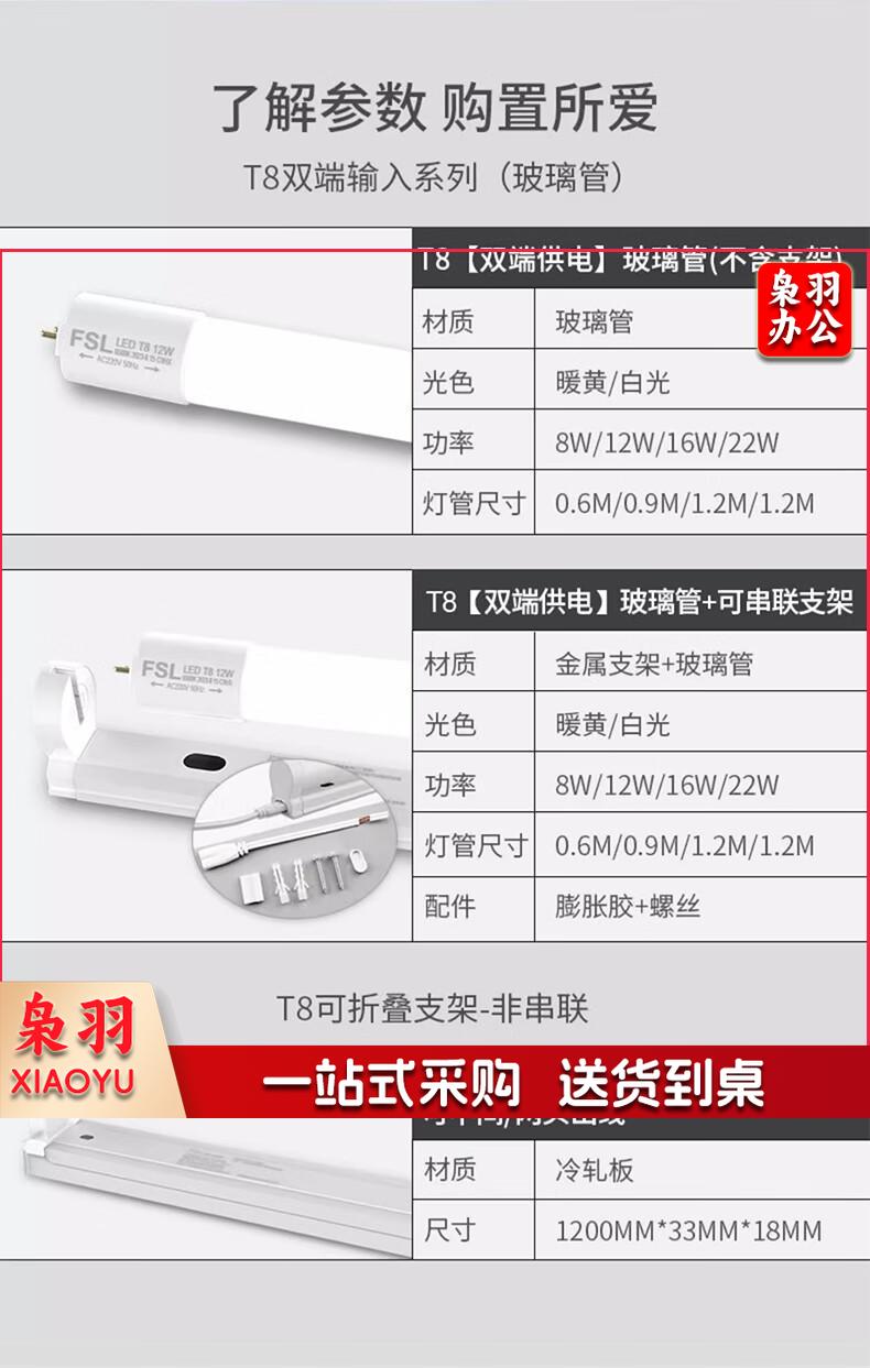 佛山照明(FSL)T8灯管双端供电LED长条灯管1.2米光管30W白光(不含支架 需自购)30瓦1.2米白光