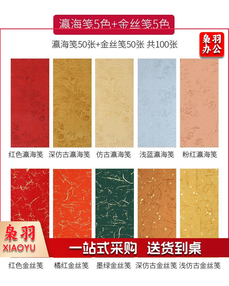 100张一笔笺彩色宣纸书法 信笺花笺便签蜡染小楷书法 10色鱼子金笺混搭(100张) 10*23cm10色鎏金笺混搭100张