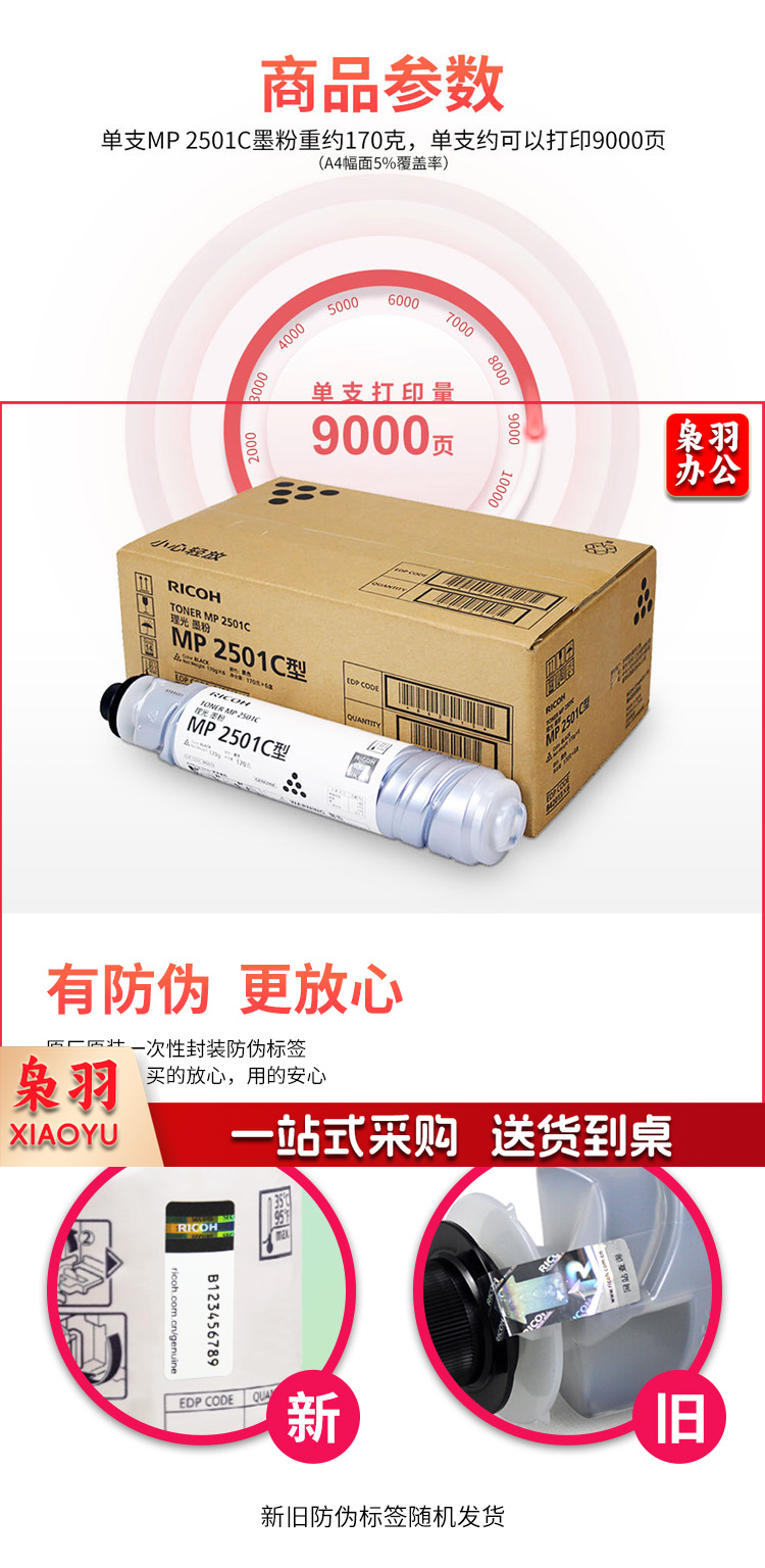 理光(Ricoh)MP 2501C 办公设备墨粉1支装(适用于MP 2001SP/2501L/2501SP/2013L/2001L/1813L)