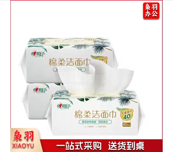 心相印洗脸巾干湿两用棉柔巾一次性洗脸巾加厚珍珠纹平纹AB面脸部清洁巾 1包80抽