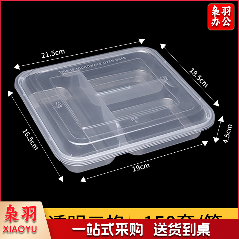 加厚 一次性餐盒 三格快餐盒 长方形 商用饭堂分格打包盒便当盒 150个/件 整箱销售