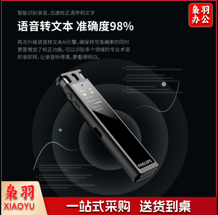 飞利浦(PHILIPS)录音笔VTR5260专业智能AI 语音录音笔转文字设备32GB录音器灰色