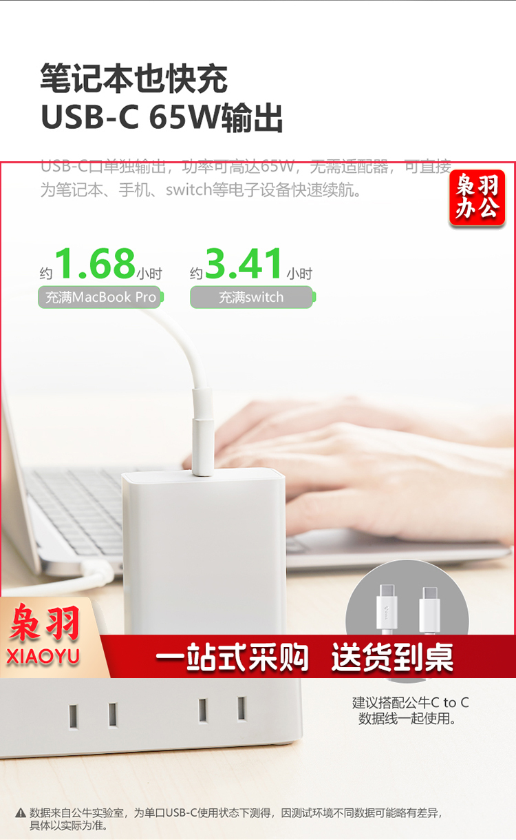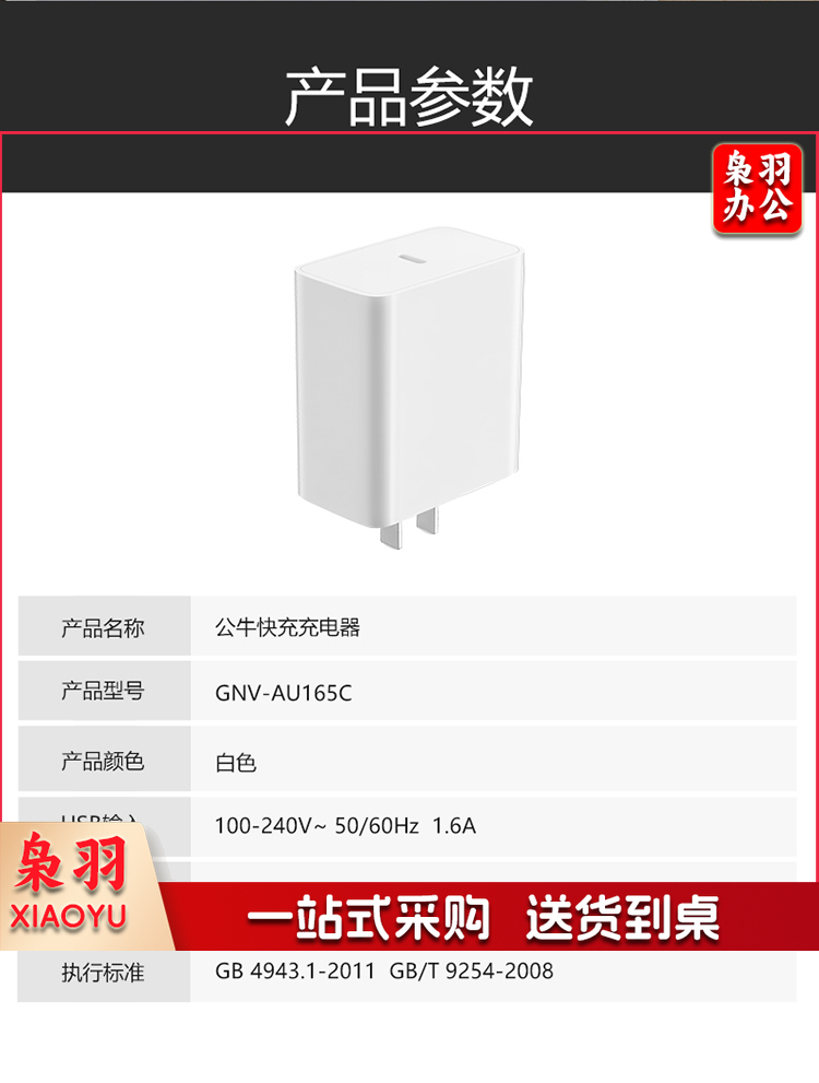 公牛 GNV-AU165C 65W充电器/笔记本电源适配器小巧便携 适用于华为小米联想苹果macbook笔记本 白色