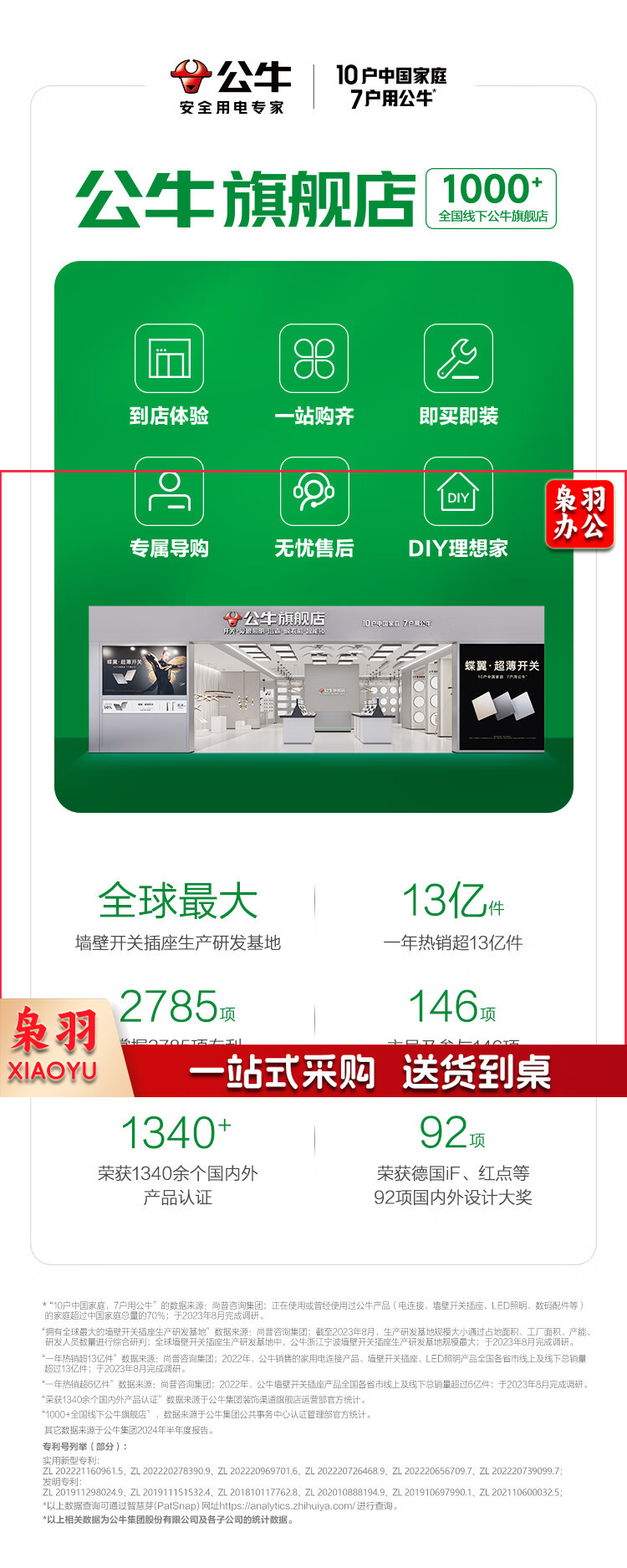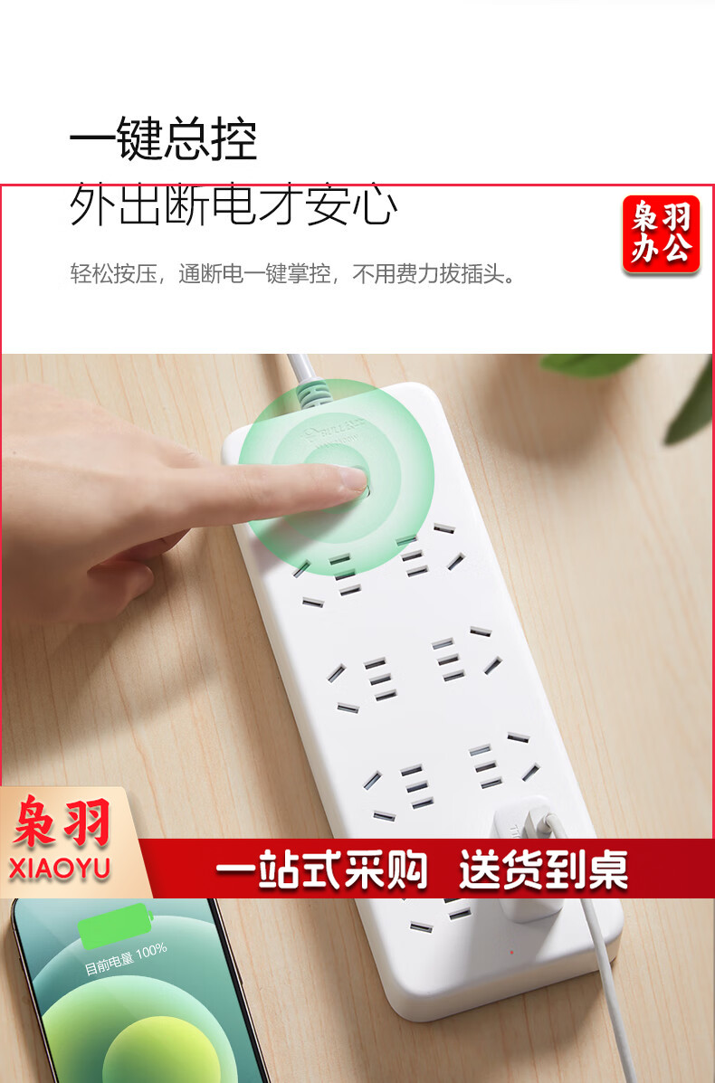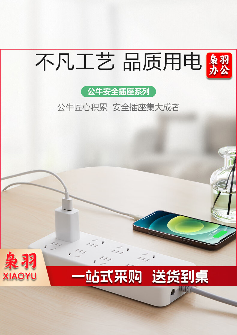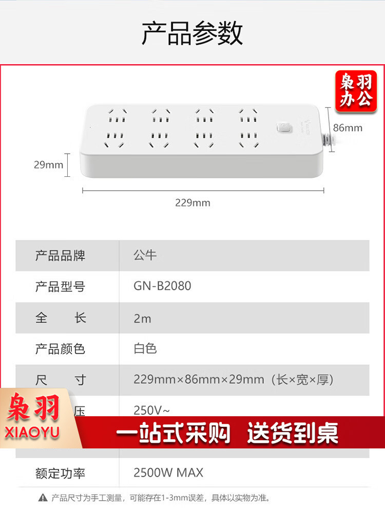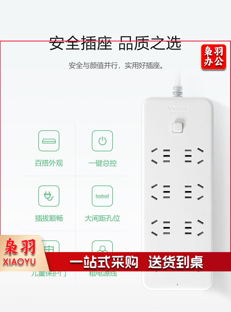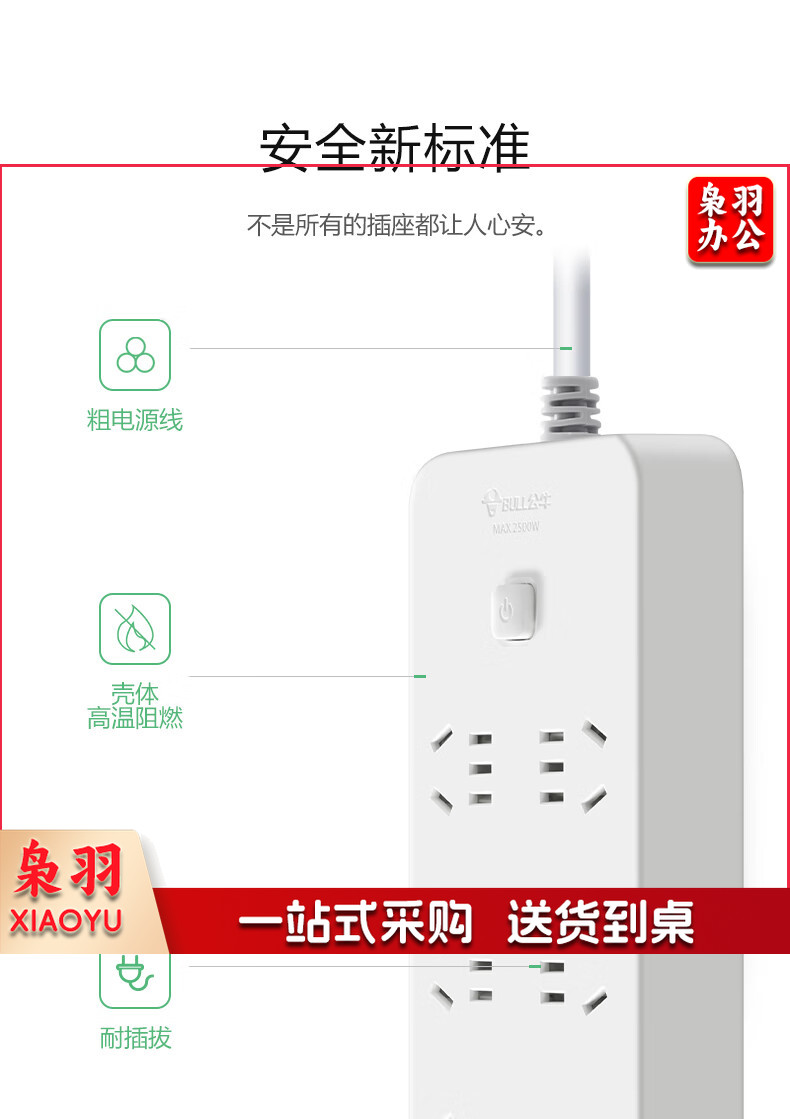 公牛(BULL)超功率保护 新国标插座/插线板/插排/排插/接线板/拖线板 GN-B2080 8位总控开关全长2米