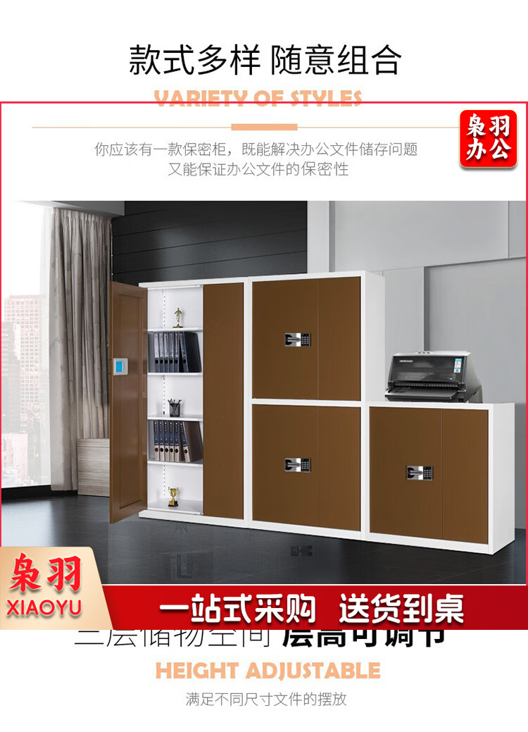 保密办公国宝锁钢制防盗柜白框咖门矮柜