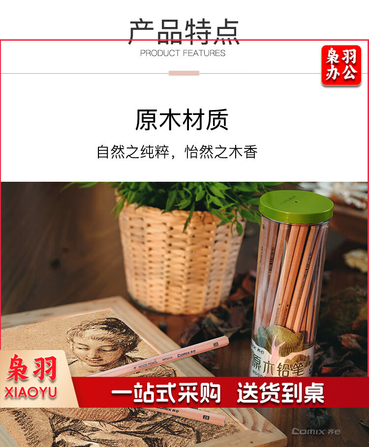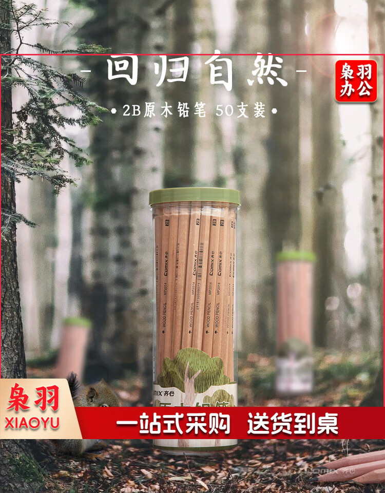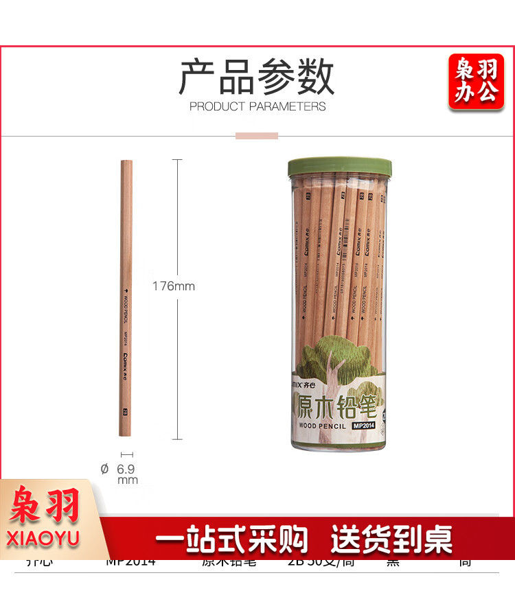 齐心(Comix)六角笔杆原木2B铅笔考试专用学生铅笔 50支/桶 MP2014