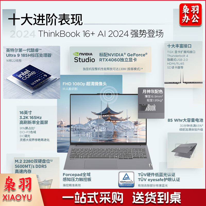 联想工作站ThinkBook 16+2024 AI全能工作站 英特尔酷睿Ultra9 185H 16英寸32G 1T 3.2K RTX4060