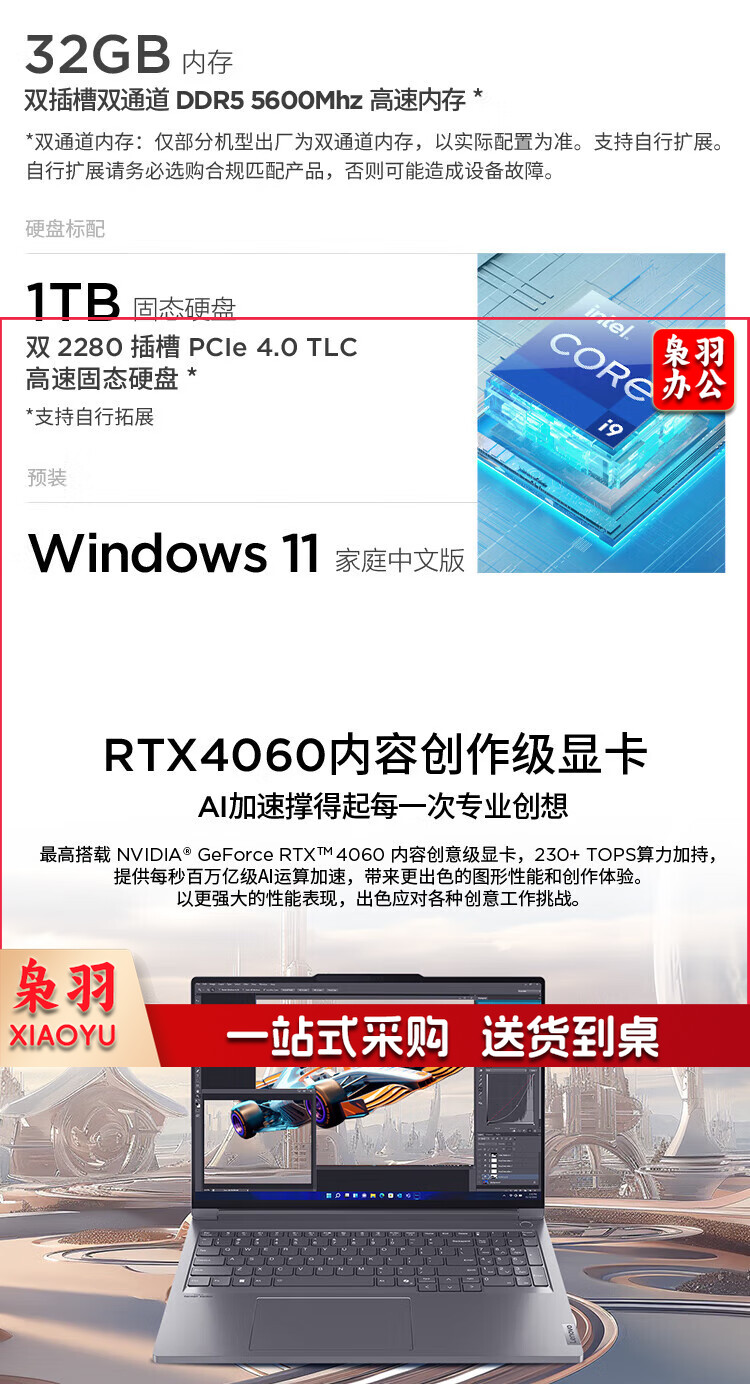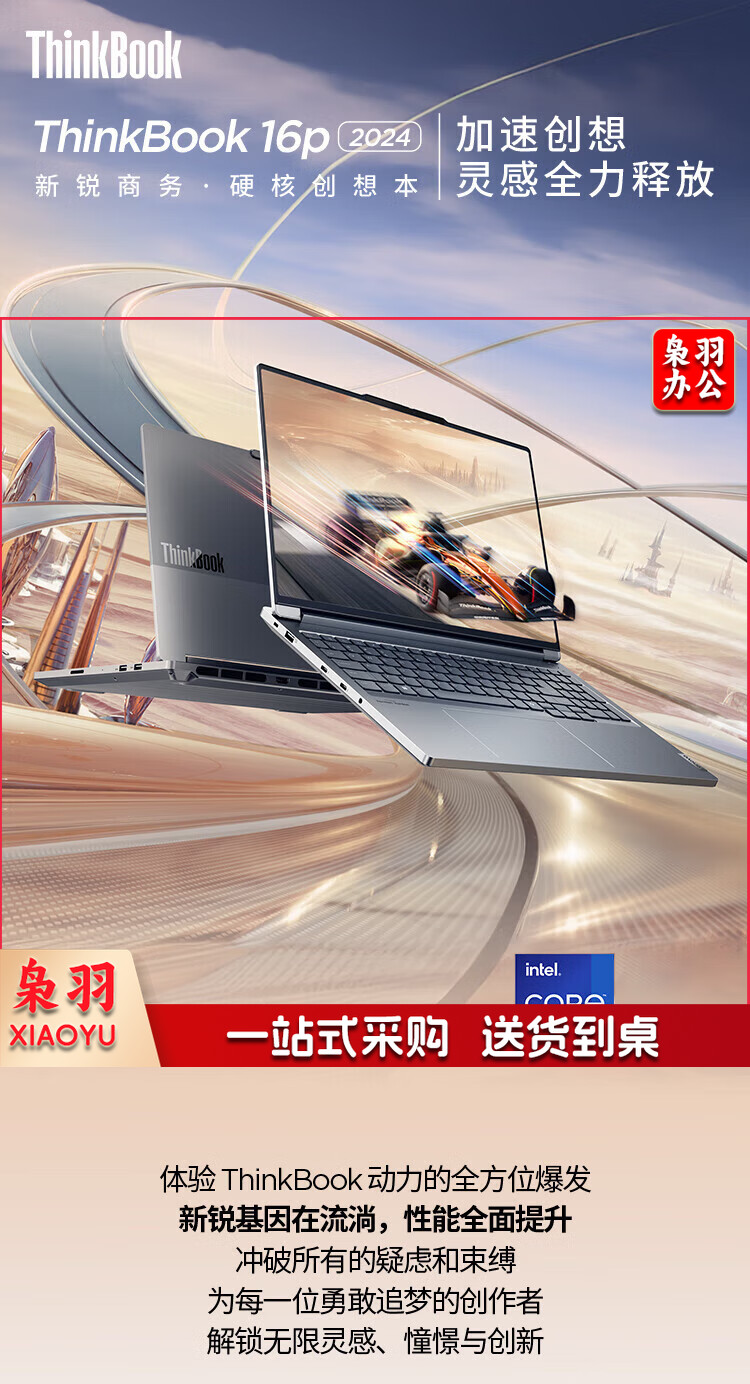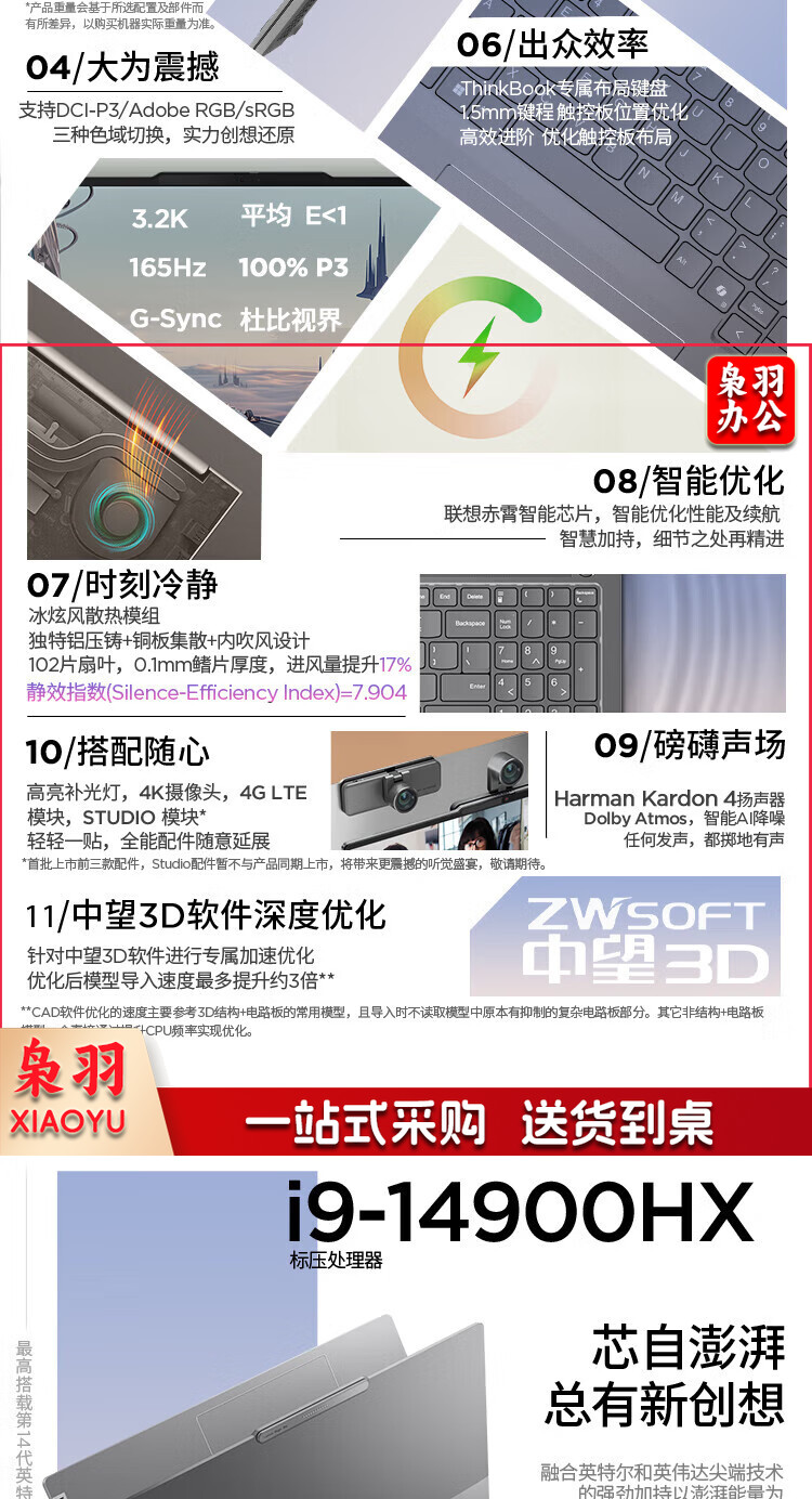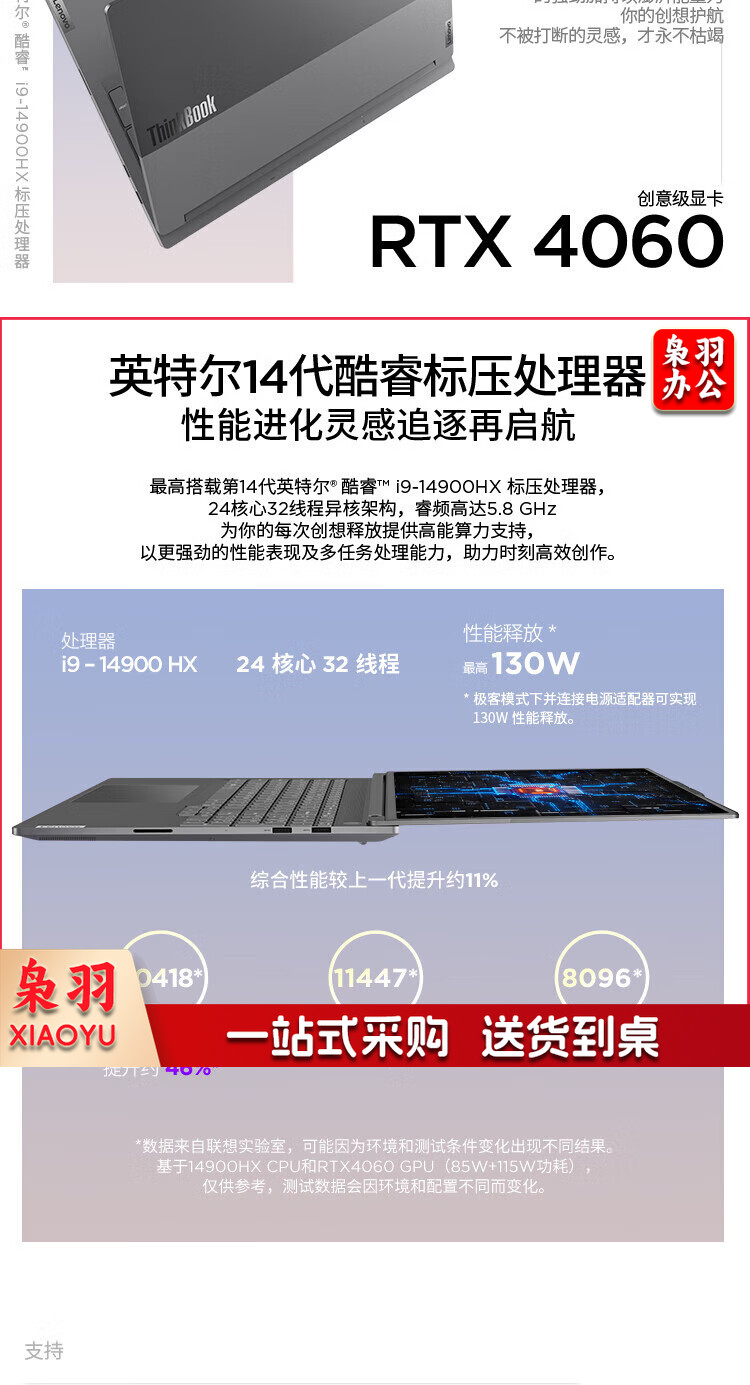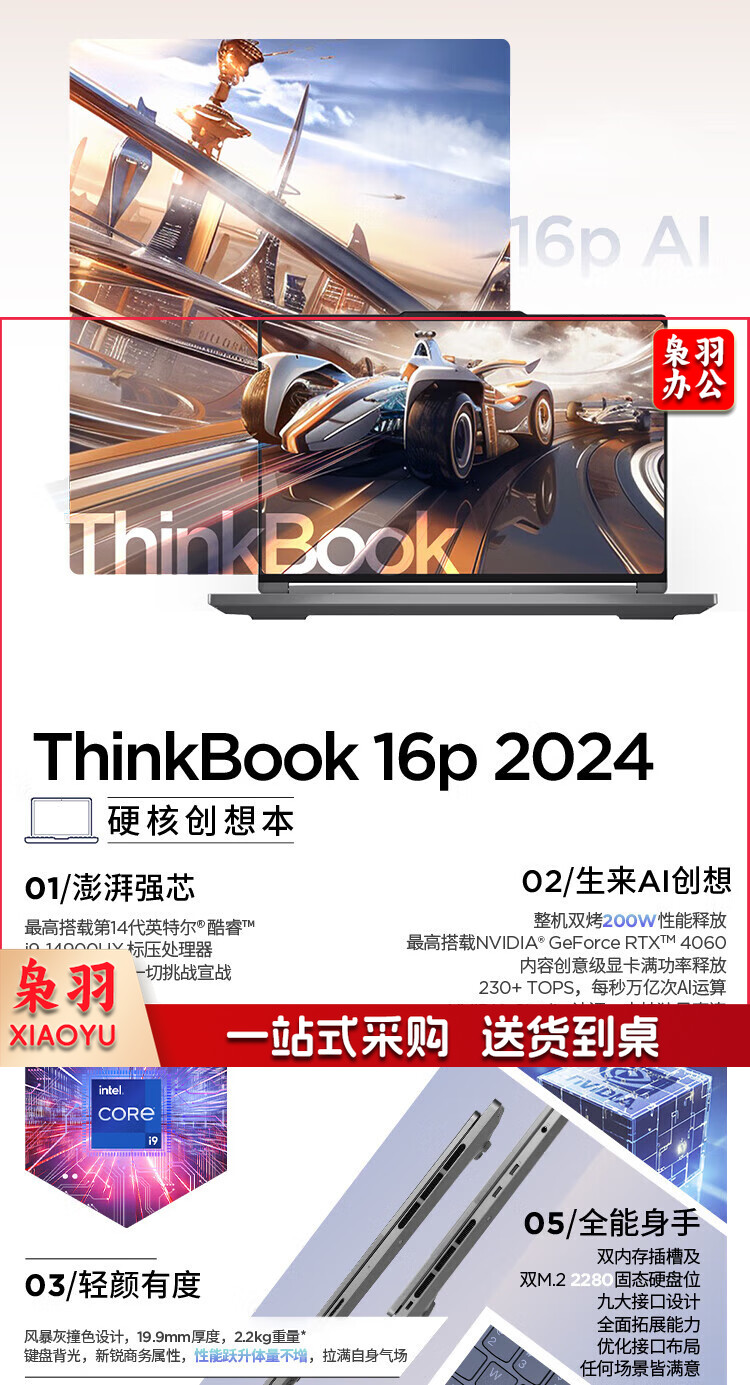 联想笔记本电脑 ThinkBook 16P 16英寸2024高性能游戏本3D建模CAD制图设计师移动工作站 定制 i9-14900HX 64G 4T固态 RTX4060 8G独显
