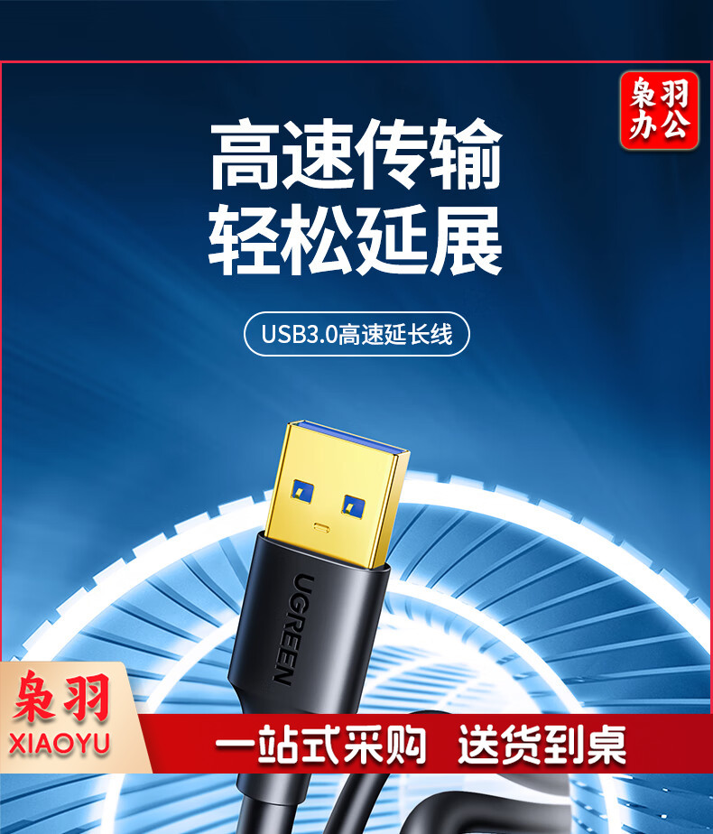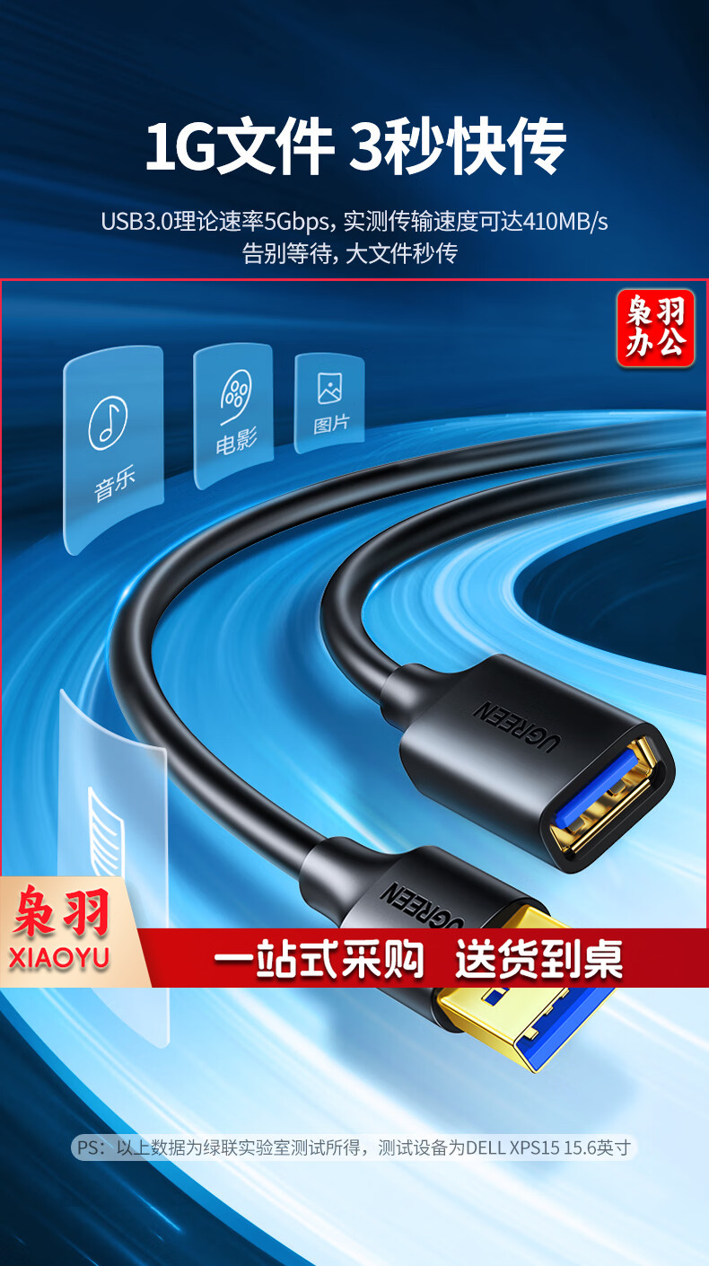 绿联 USB3.0延长线公对母 高速传输数据连接线 电脑U盘鼠标键盘打印机充电器分线器扩展延长加长转接线 3米