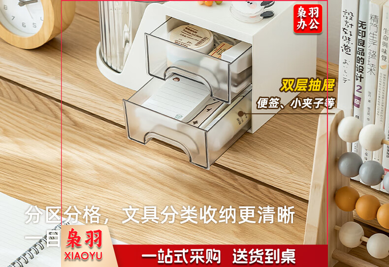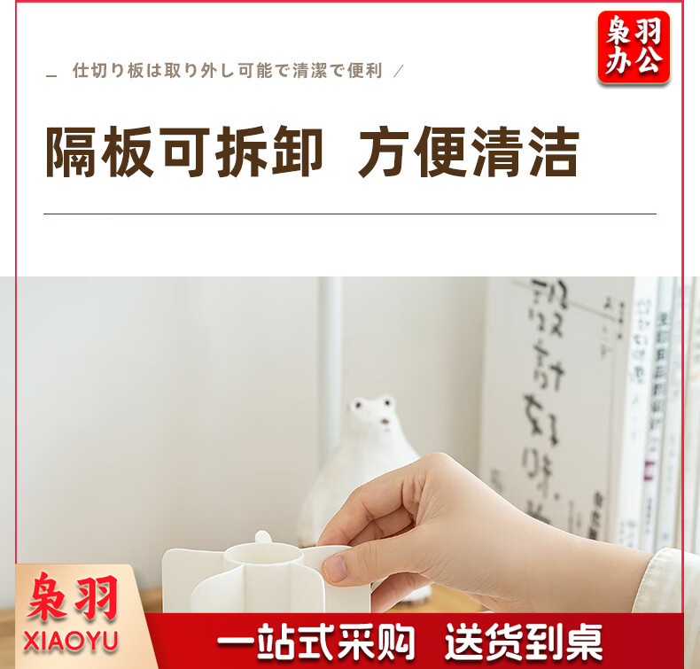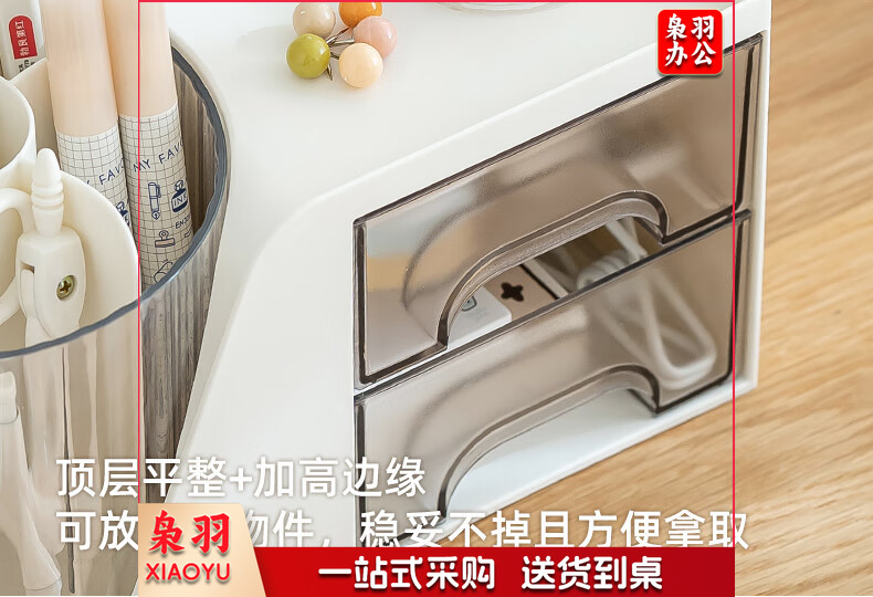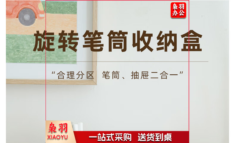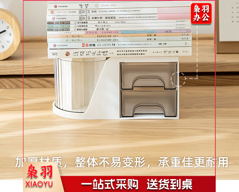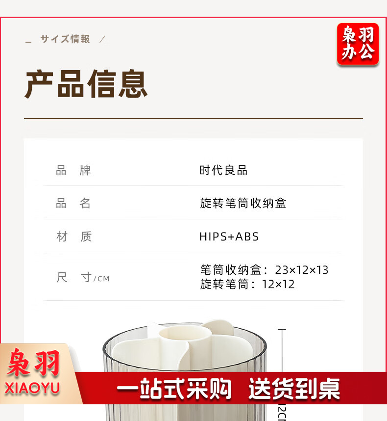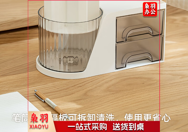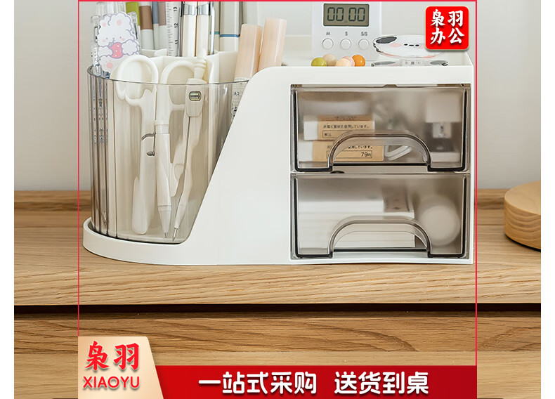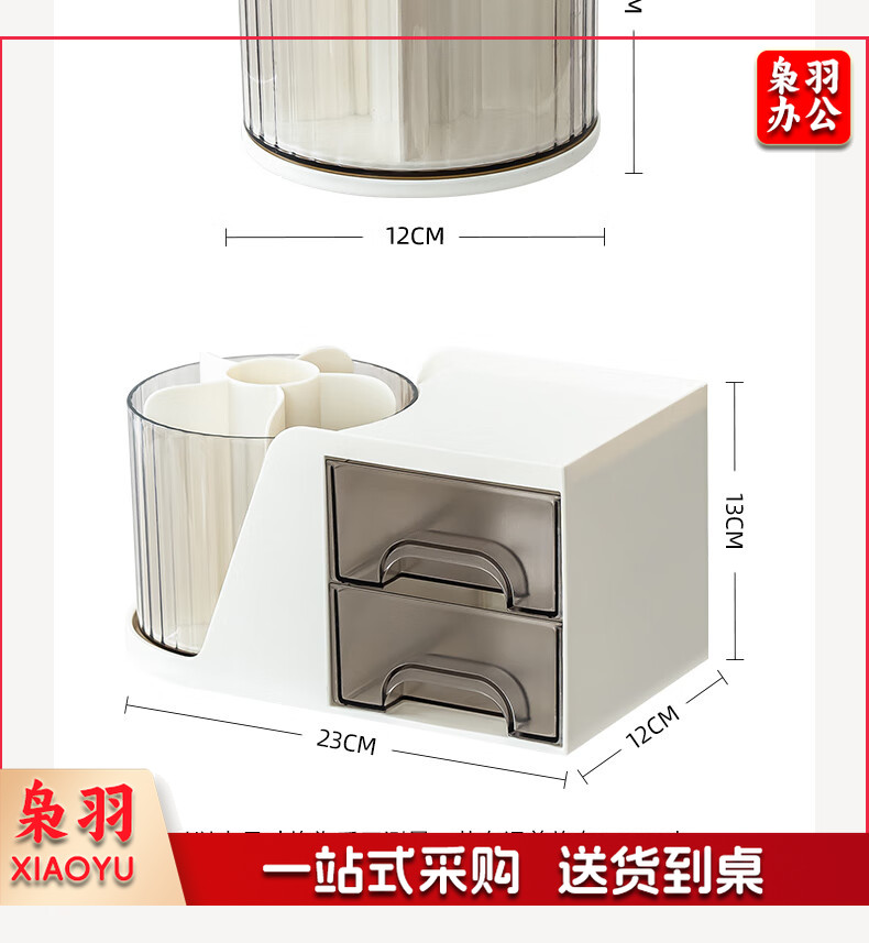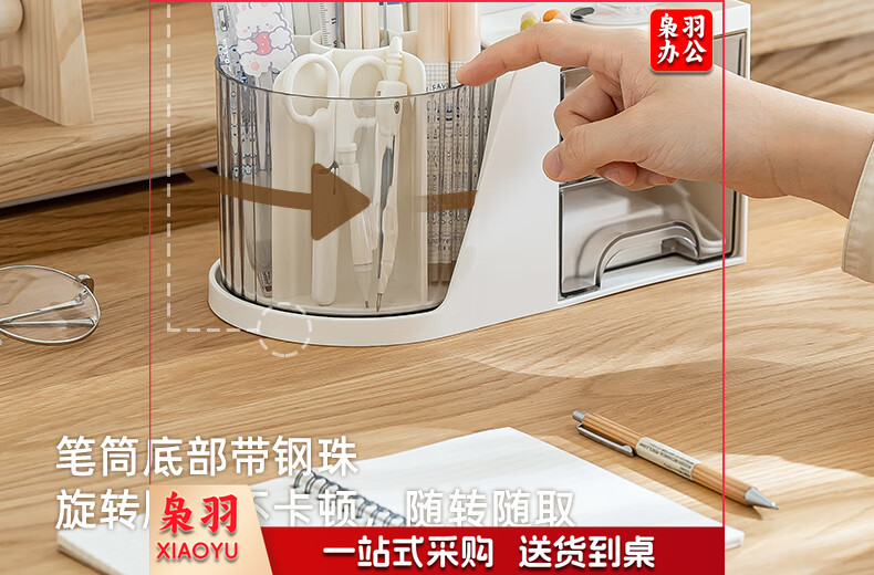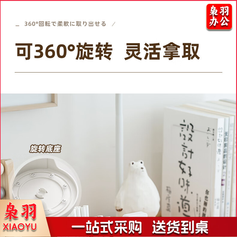 时代良品 高颜值旋转笔筒收纳盒办公桌桌面收纳盒办公室文具 白色笔筒收纳盒