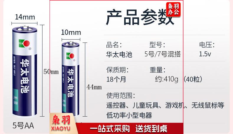 华太 5号 碳性电池 适用于:儿童玩具/遥控器/挂钟/闹钟/鼠标键盘/计算器/温度计(100个起送)