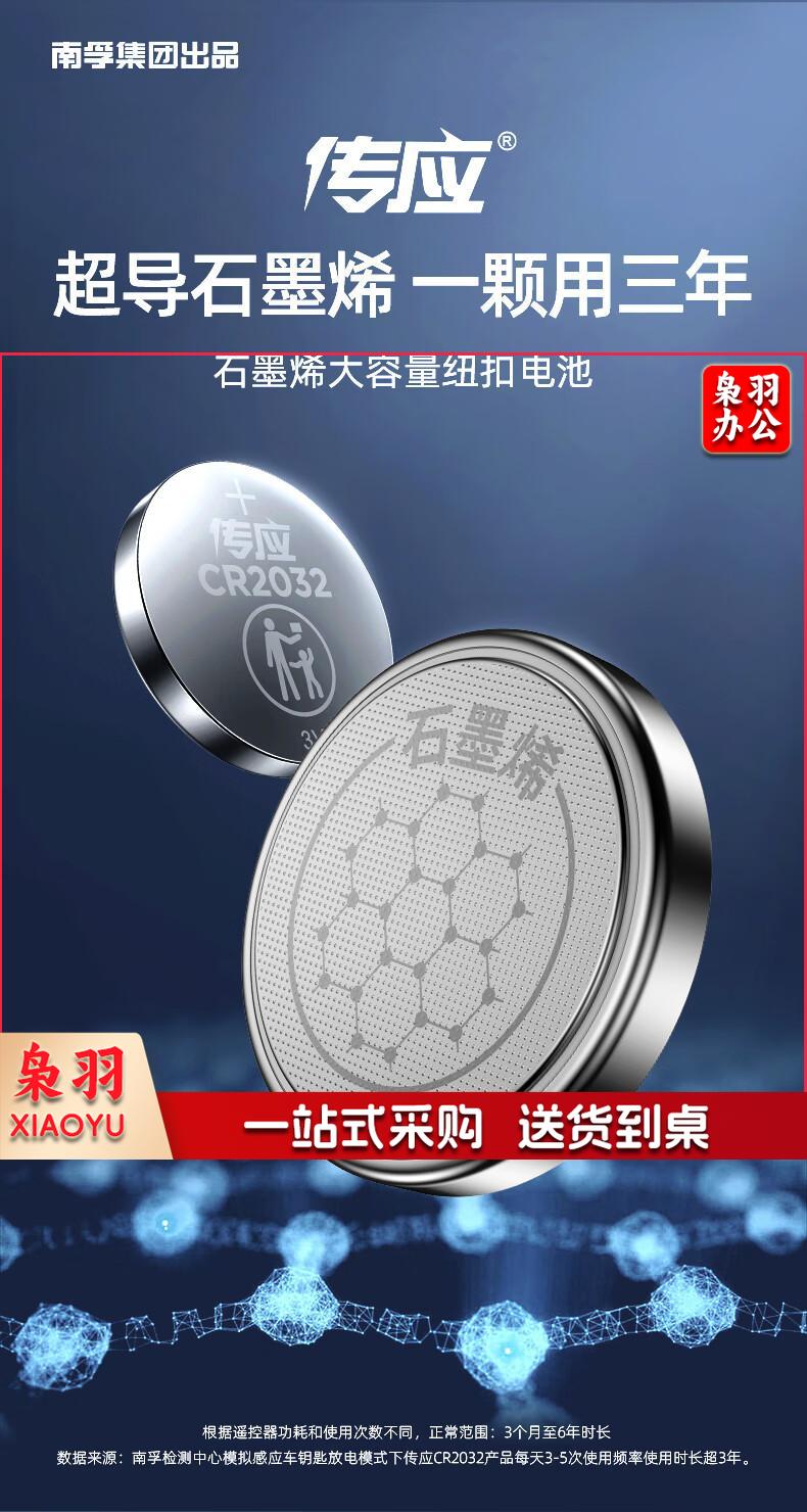 传应南孚石墨烯CR2032纽扣电池5粒3V锂电池适用大众奥迪现代等汽车钥匙遥控器小米盒子耳温枪等cr2032(10条起送)