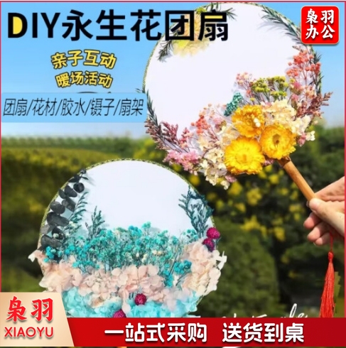 三八节手工干花团扇 中国风diy材料包沙龙手工制作永生花古风扇子 仓配款式随机