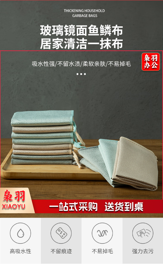 鱼鳞布吸水不易掉毛擦玻璃杯碗桌镜子无痕鱼鳞抹布厨房擦桌 清洁巾