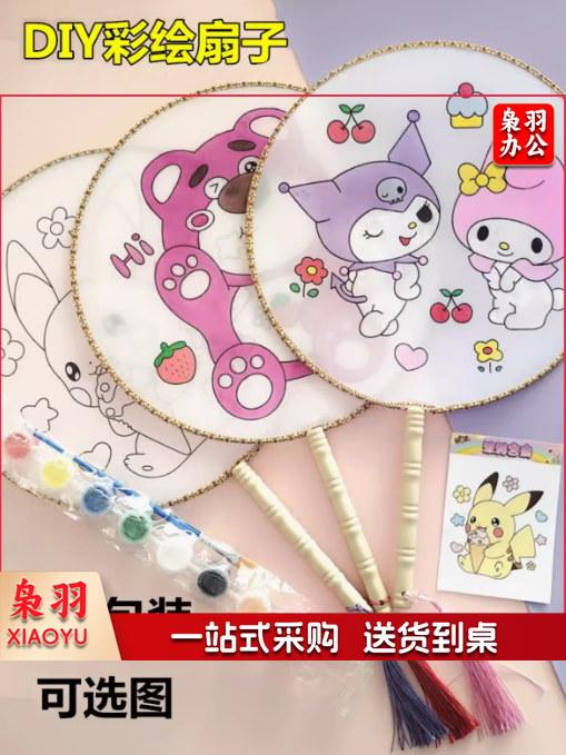 加厚宣纸空白团扇子 工笔手绘画白描底稿填色临摹DIY活动扇面