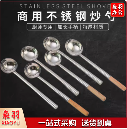 不锈钢炒勺厨师专用炒菜勺子厨房长柄汤勺大号商用粥勺分菜勺