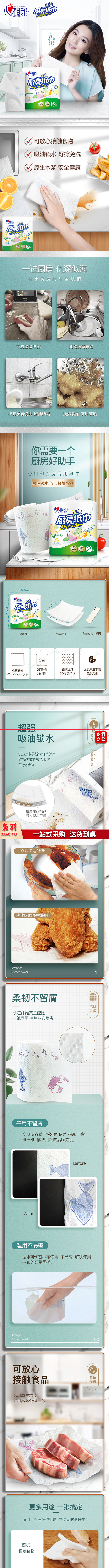 心相印 厨房用纸卷纸吸水纸 加厚擦手纸 厨房纸巾 75节卷纸*2粒