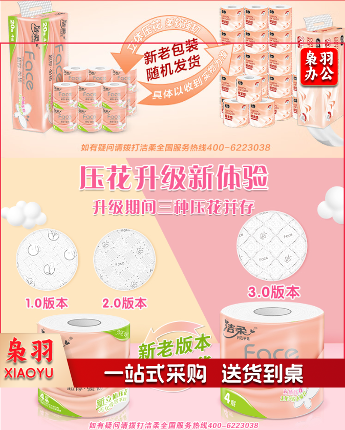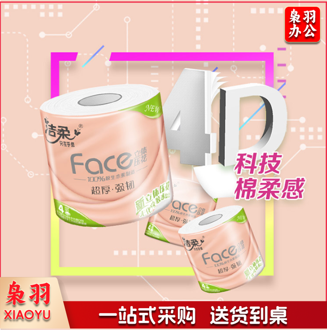 洁柔卷纸 加厚4层120g卫生纸*20卷 加量装 母婴可用4D新科技棉柔感