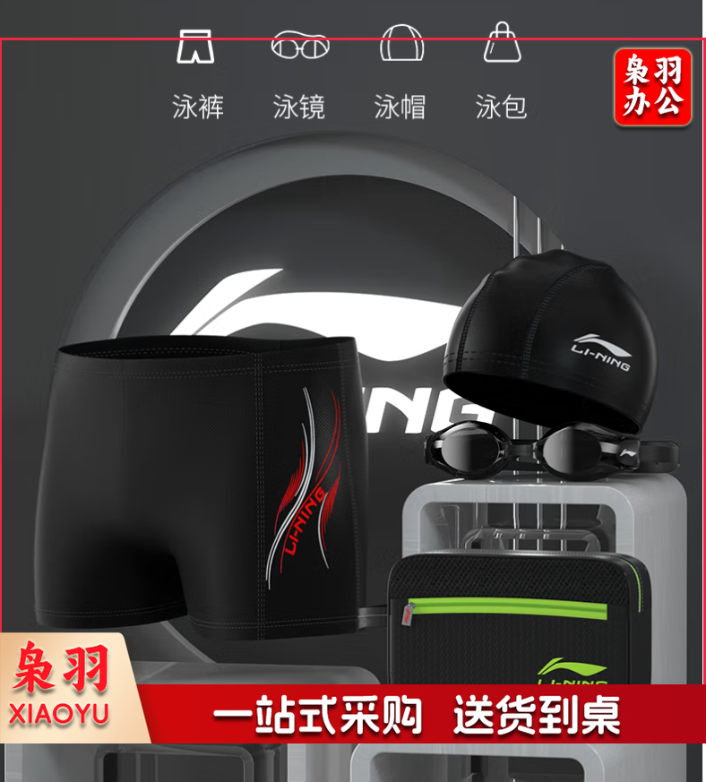 李宁(LI-NING)泳裤泳镜泳帽收纳包套装 时尚大气游泳装备LSJK333 黑 L 近视款200度