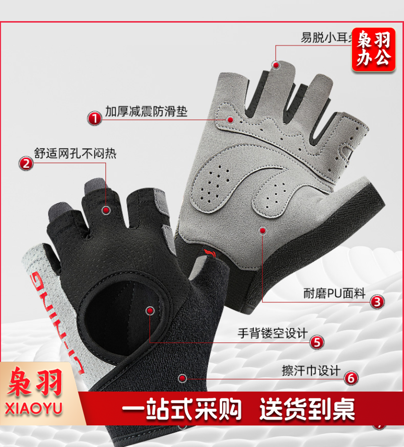 李宁健身手套男女运动骑行半指训练单杠引体向上撸铁器械锻炼防滑登山