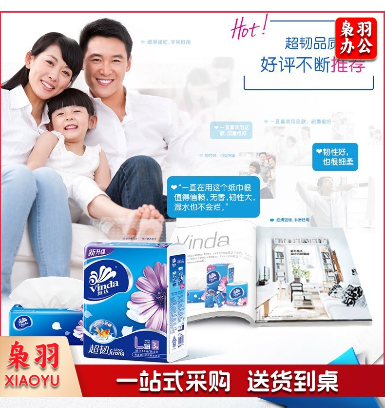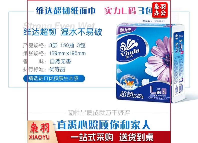 维达(Vinda) V2220 3层150抽抽取式维达面巾 3包/提