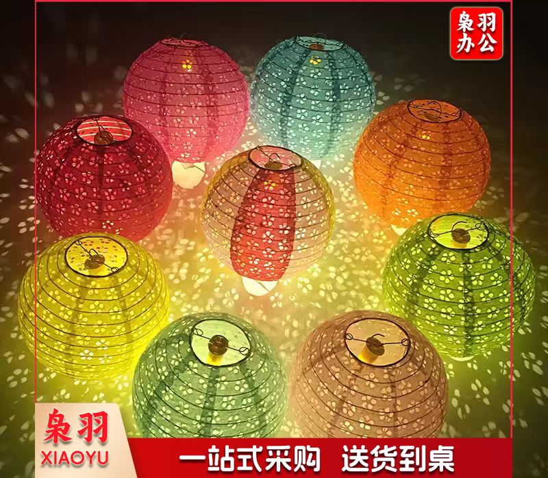 节日圆形镂空纸灯装饰彩色小灯笼 8寸(含灯芯)