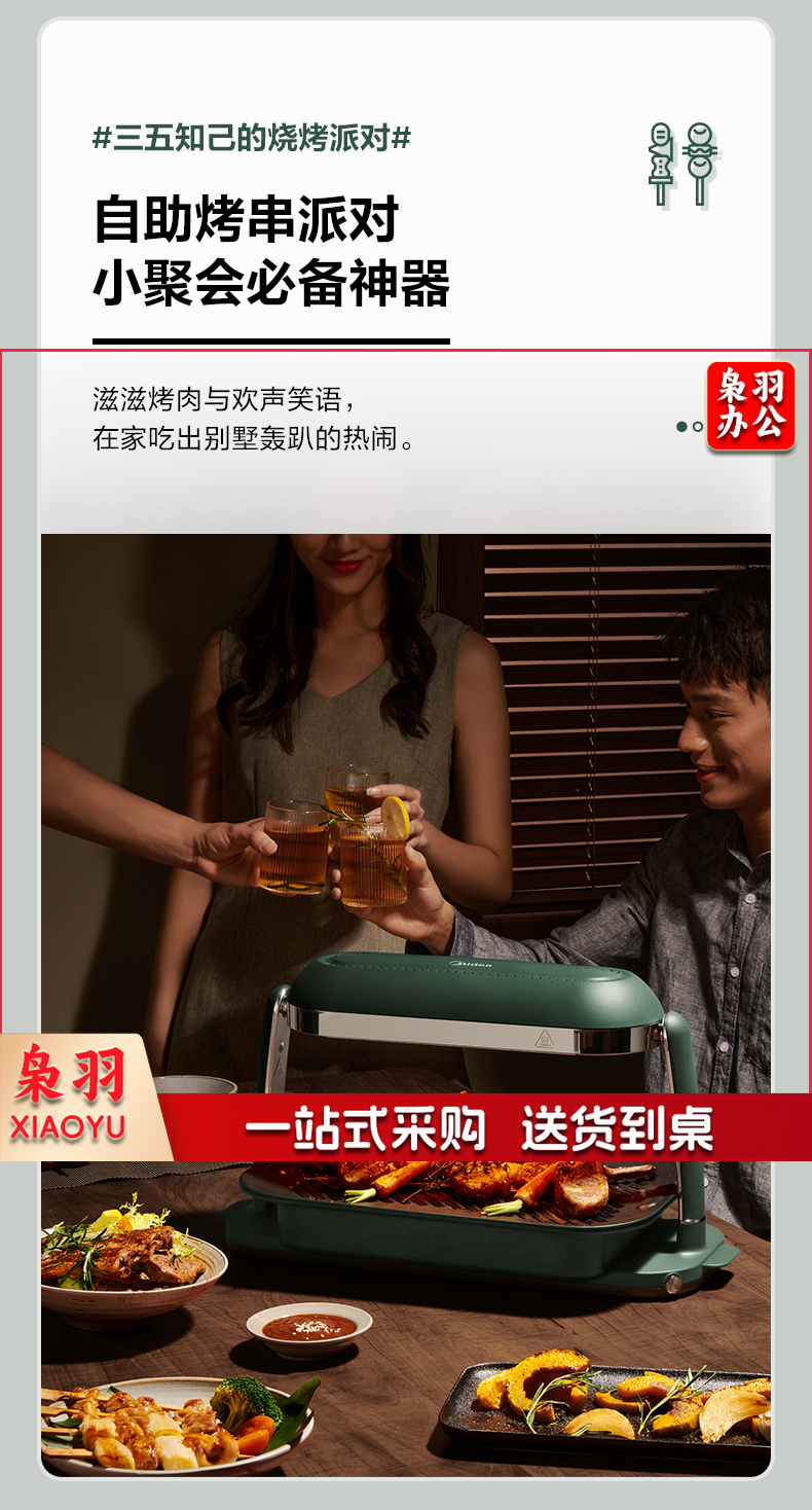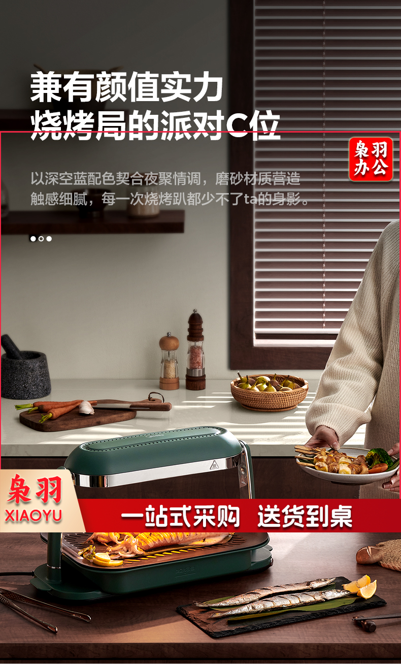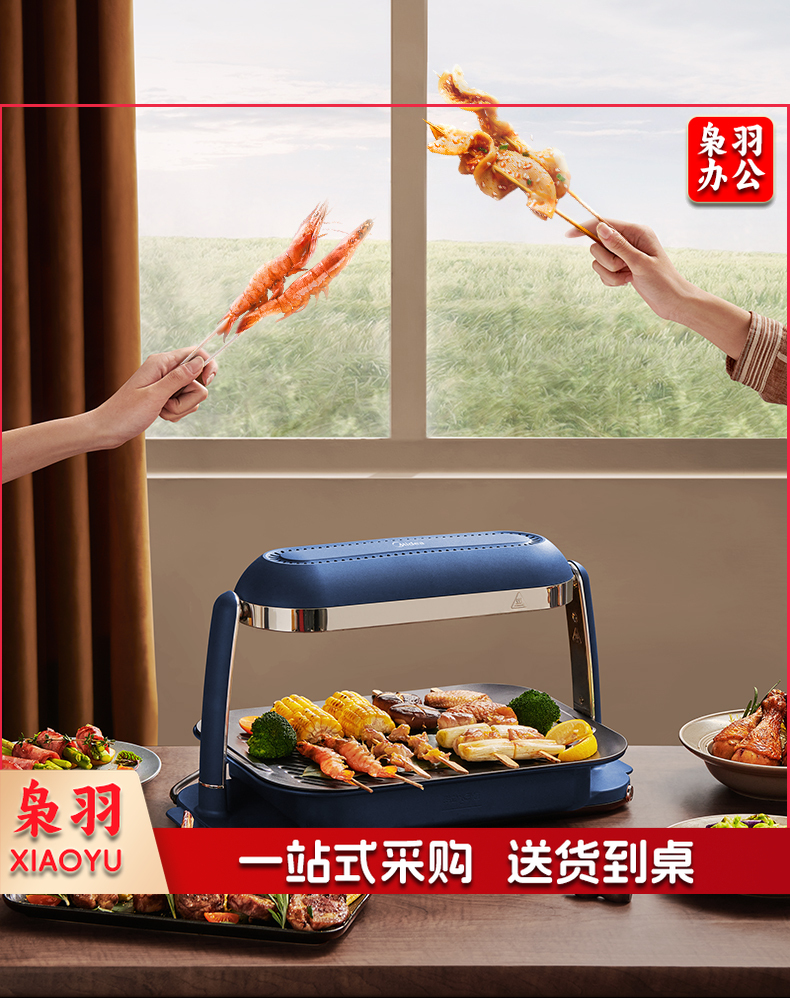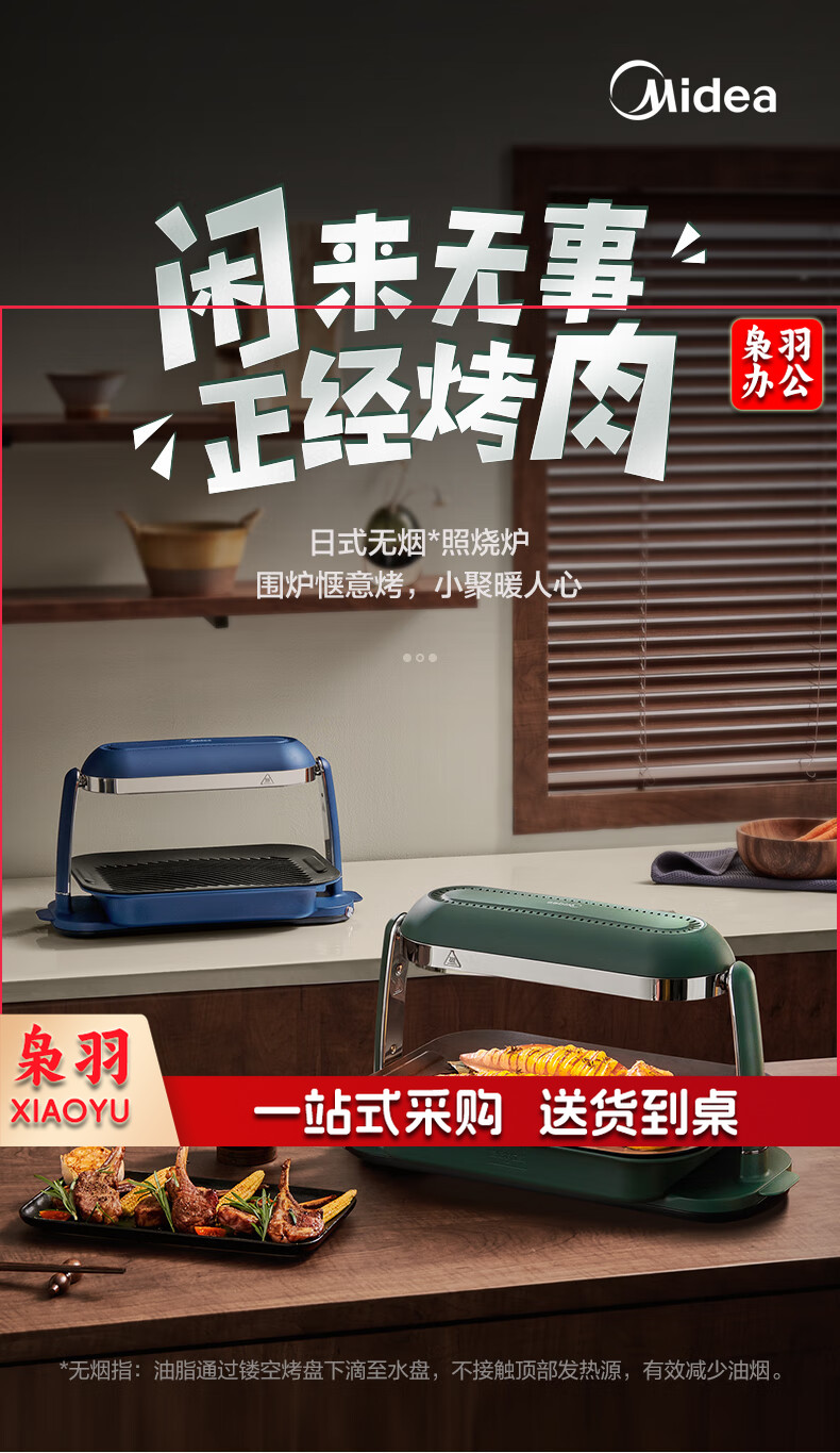 美的 Midea日式照烧炉烧烤炉家用电无烟烤串机烧烤锅烧烤盘室内韩式烤肉(蓝色)PT06B3