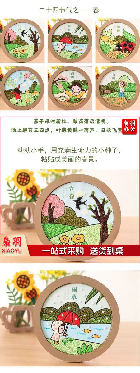 儿童环创手工二十四节气五谷杂粮豆子粘贴画DIY24节气材料包(样式可选)