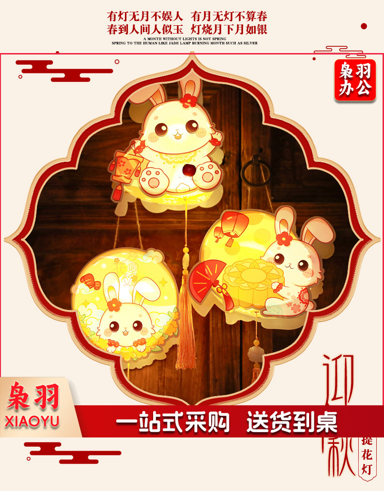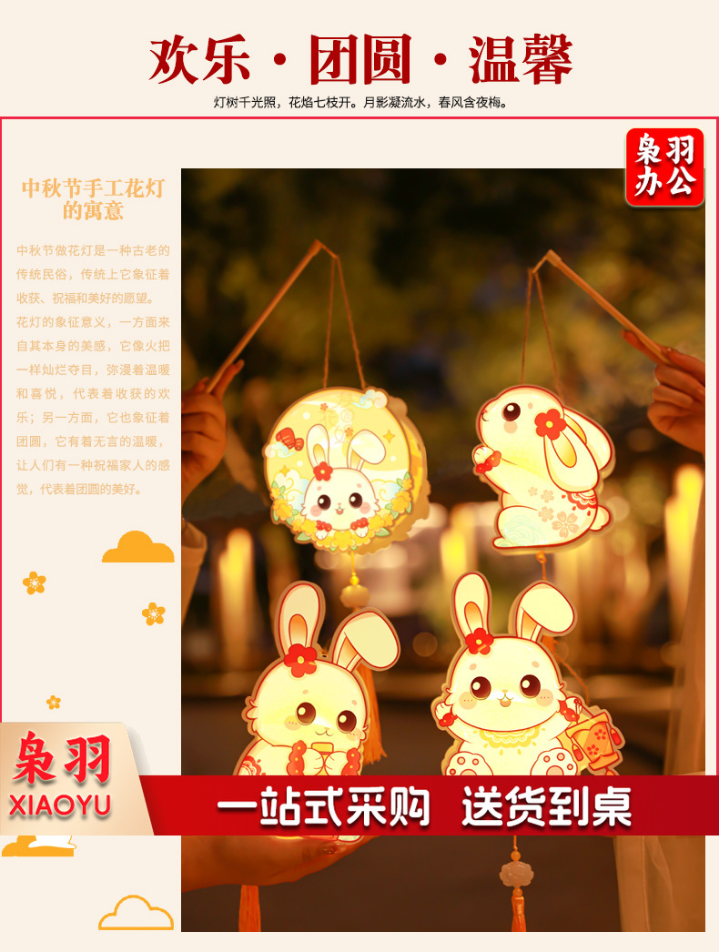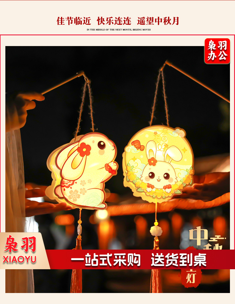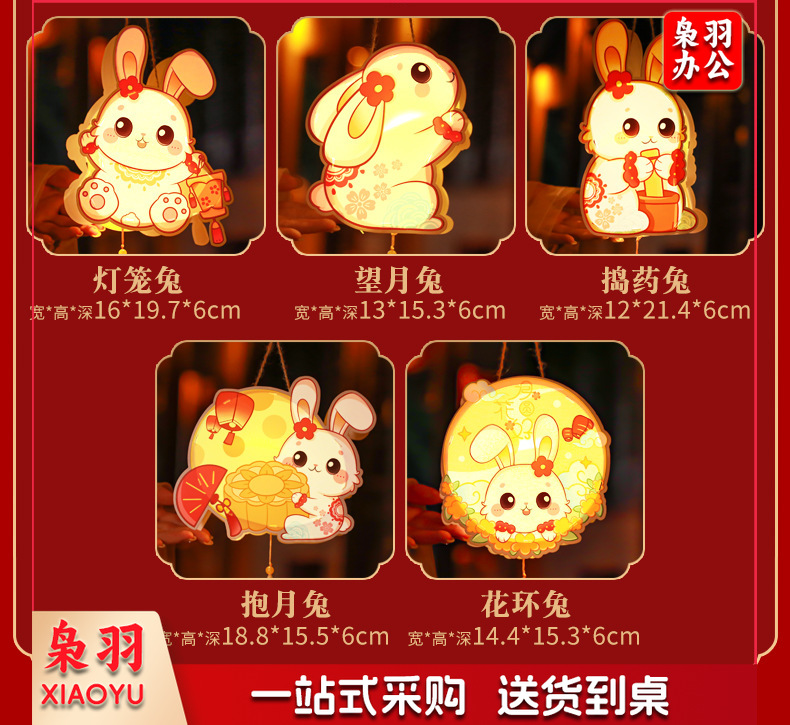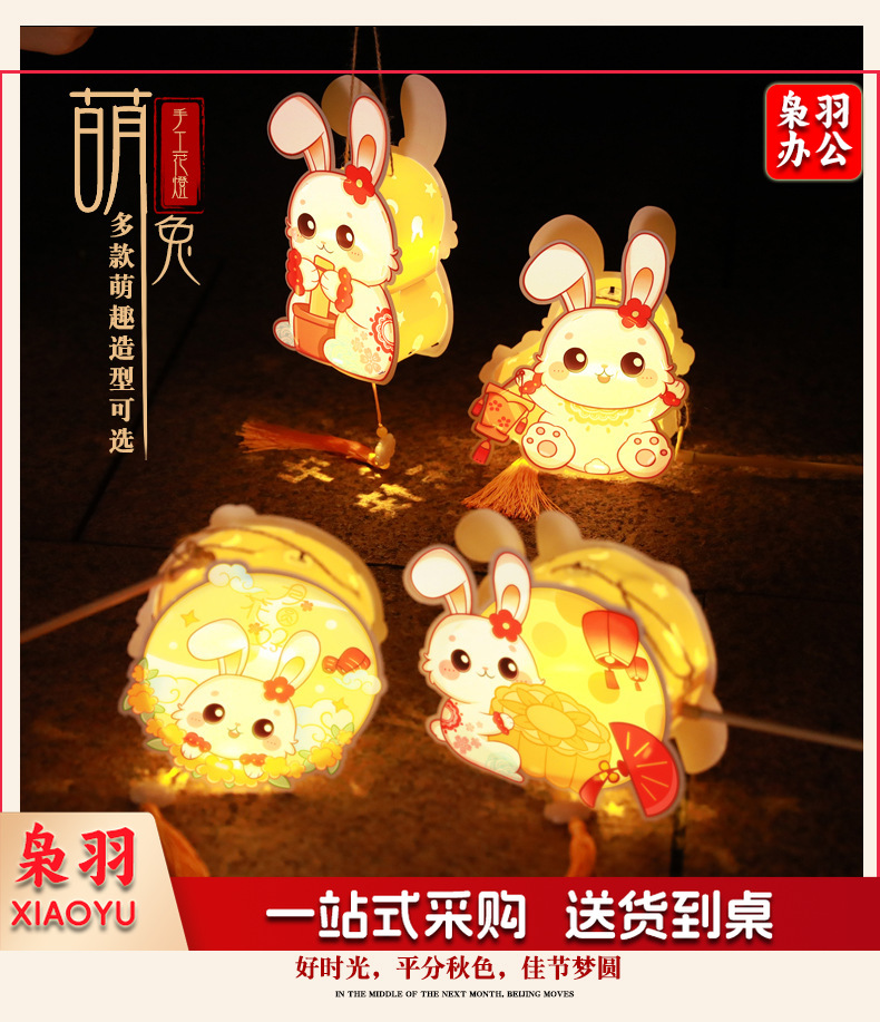 中秋节躺躺兔花环兔灯笼 卡通发光兔子pvc手提花灯 儿童手工灯diy材料 古风灯