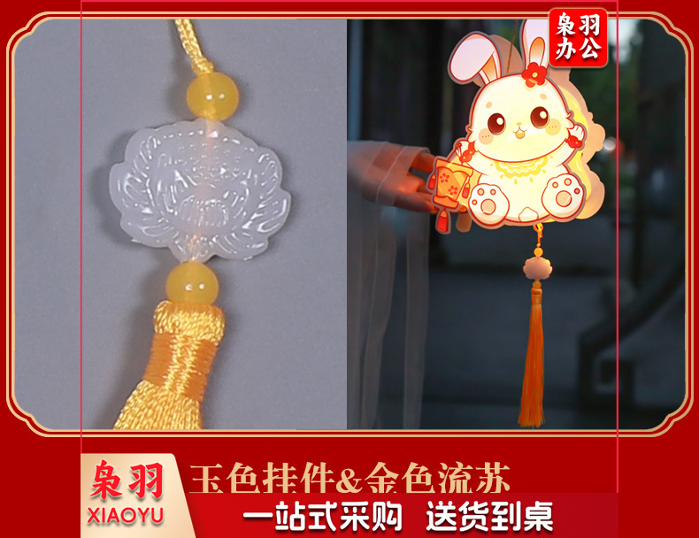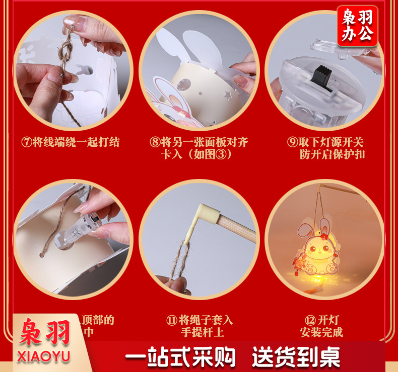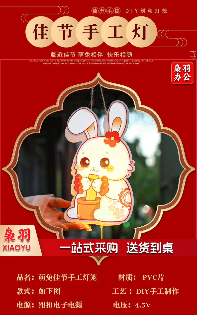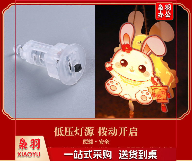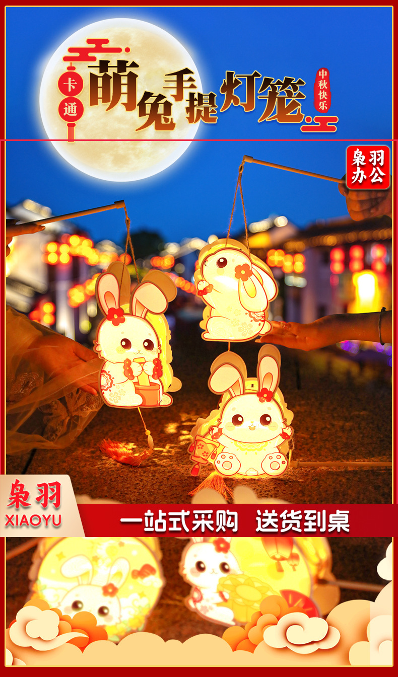 中秋节躺躺兔花环兔灯笼 卡通发光兔子pvc手提花灯 儿童手工灯diy材料 古风灯
