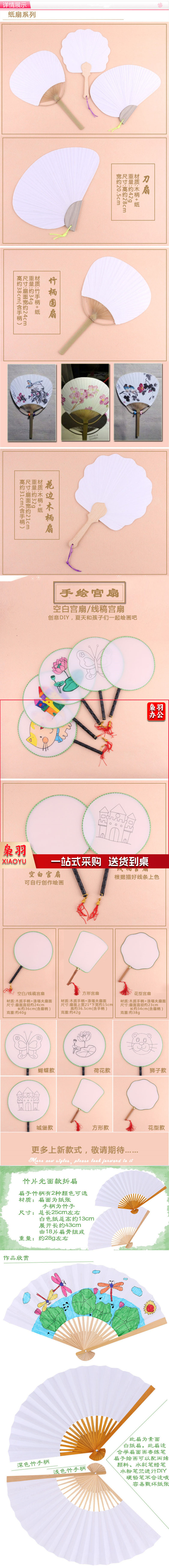多形状空白纸扇 折扇白色彩色扇子创意diy手工制作材料纸扇儿童绘画涂色100把/包(形状随机)