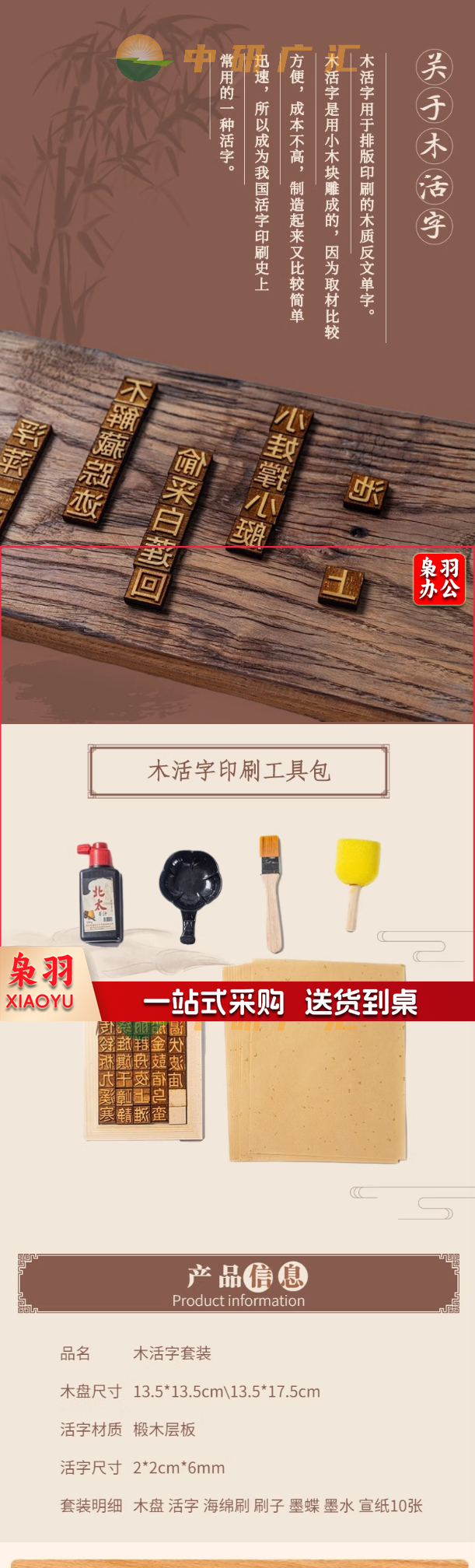 木活字印刷术diy套装材料包拓印字模工具非遗手工玩具 (五言 春晓 20张宣纸)
