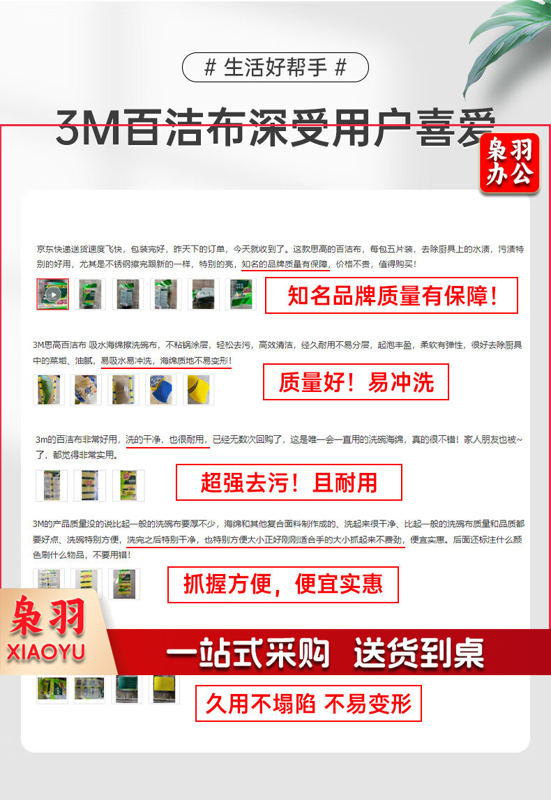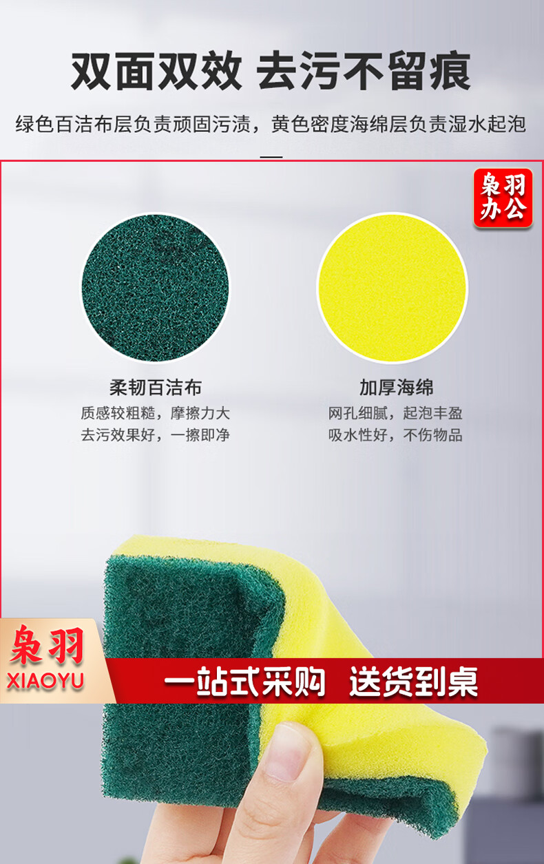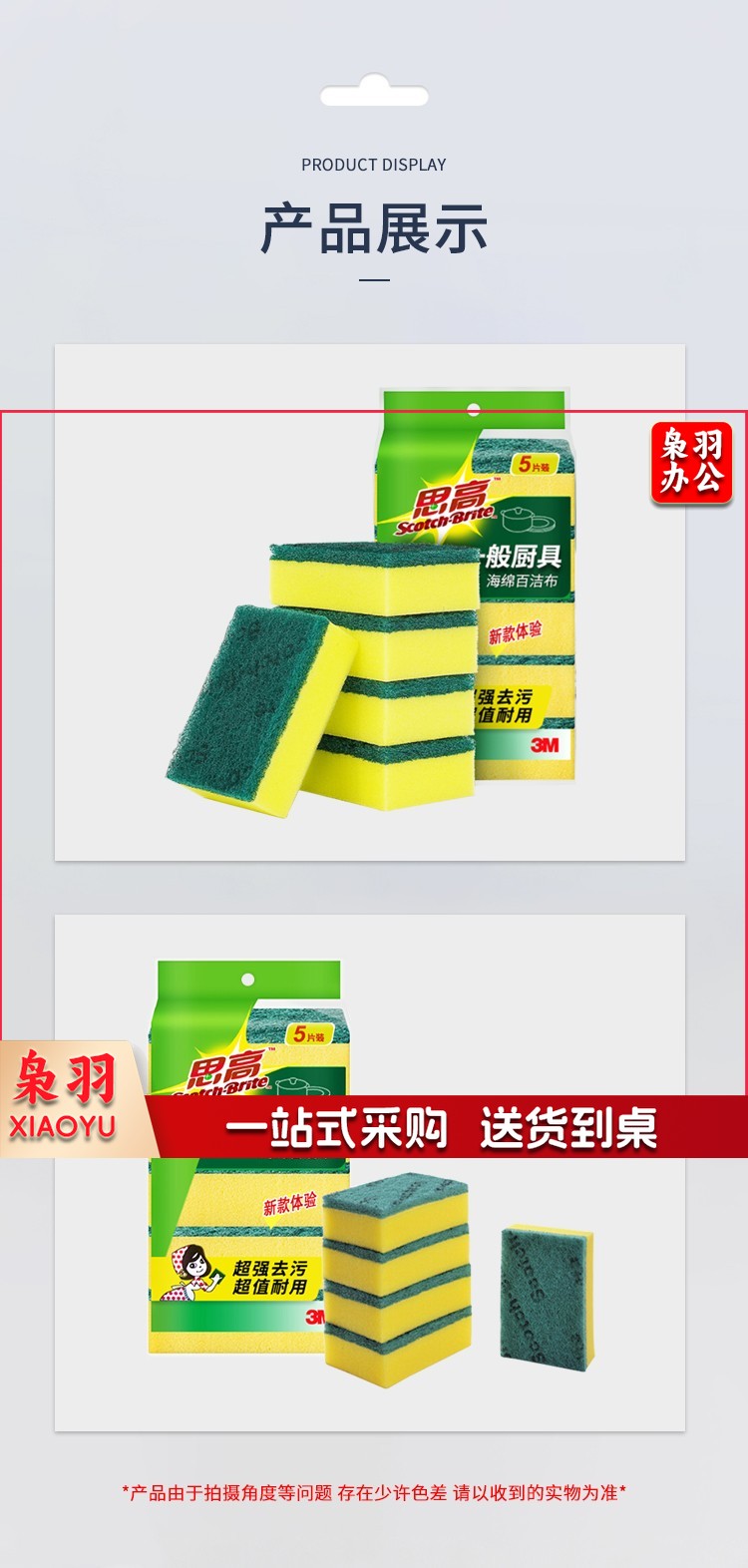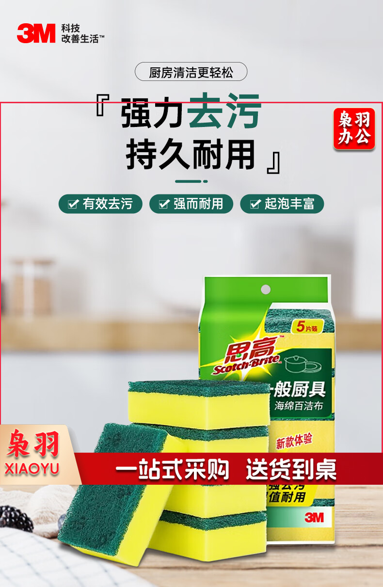 3M思高海绵百洁布洗碗布刷碗擦锅海绵擦 G6215高效厨具清洁耐用去油污 绿黄色 5片装